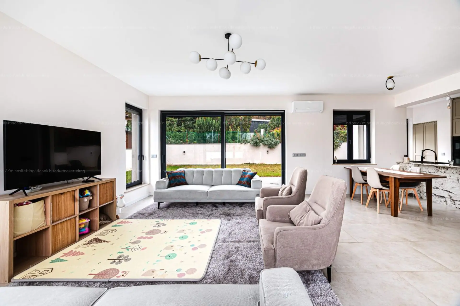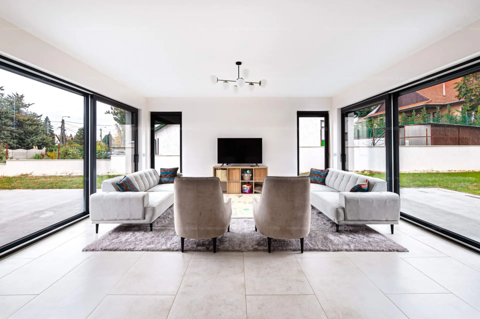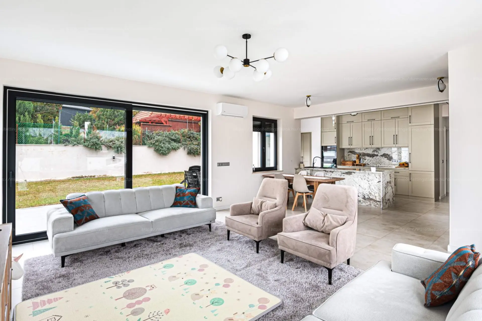 Nagyszerű ajánlat egy minőségi kivitelezésű modern, nettó 120 m²-es otthonra, amely 1059 m²-es, gondozott telken fekszik.