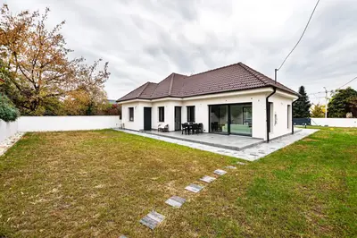 Nagyszerű ajánlat egy minőségi kivitelezésű modern, nettó 120 m²-es otthonra, amely 1059 m²-es, gondozott telken fekszik.