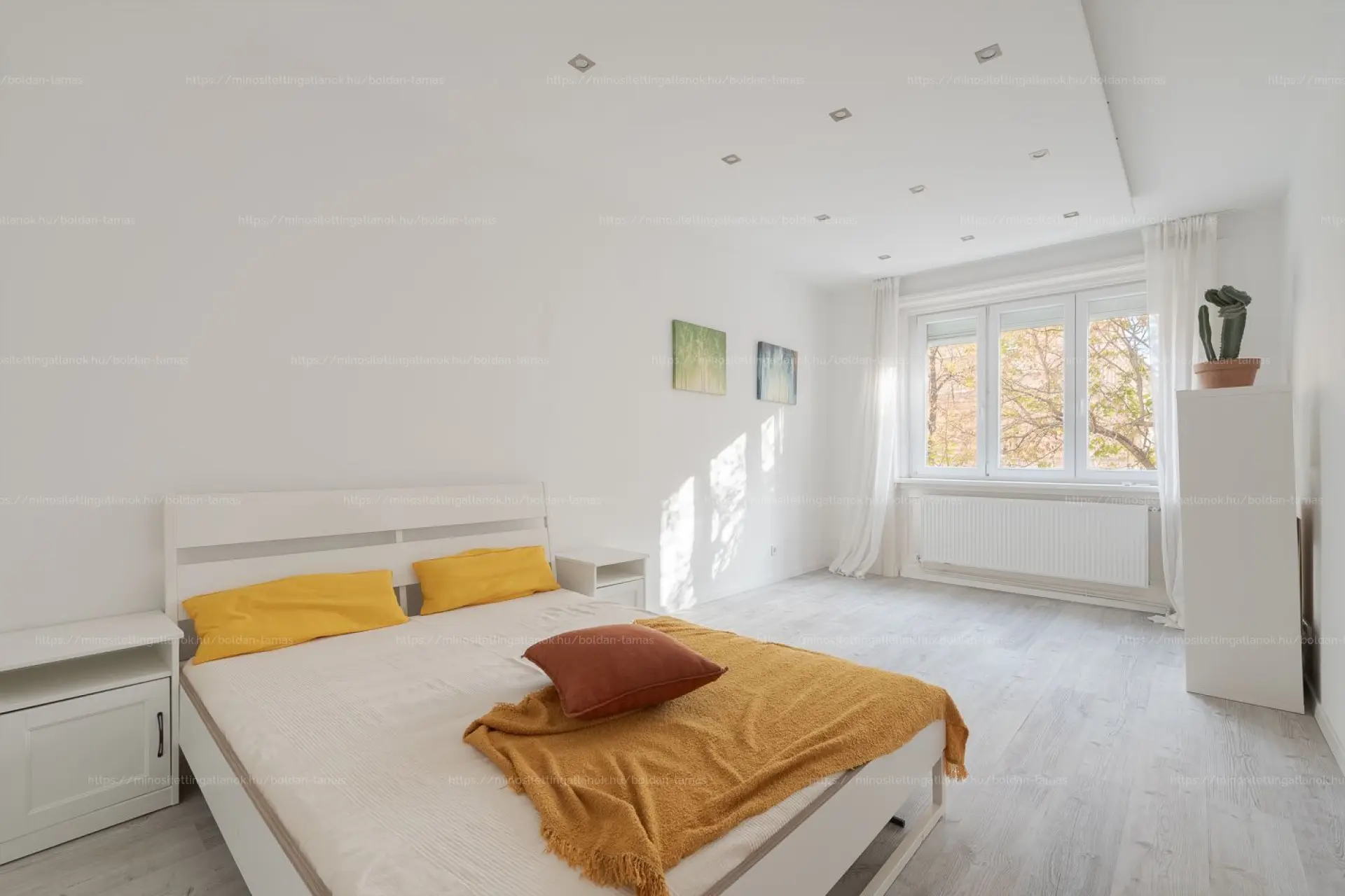 Az ingatlan eredetileg 104 m²-es polgári lakás volt, amelyet ügyvédi megosztással két teljesen önálló, külön bejáratú lakásra választottak szét.