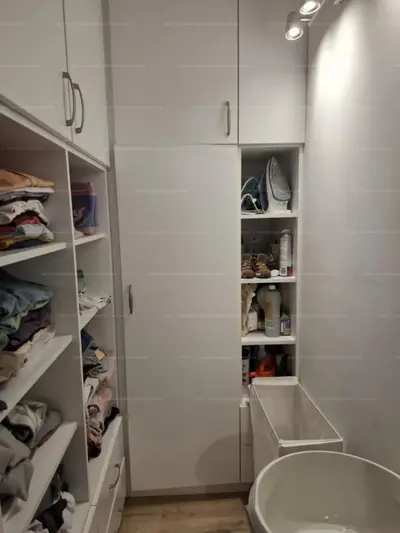A nappaliból nyílik a hangulatos félszoba, amelyből az egyedileg kialakított gardrób nyílik. Innen juthatunk a fürdőbe is amely különlegessége, hogy két irányból is megközelíthető, így a lakás szinte teljesen körbejárható így rendkívül praktikus elrendezést biztosít.