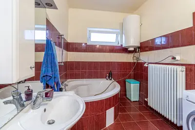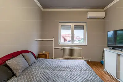 A kisebb garzon rész szobájához és egy étkezővel egybekötött konyhához MODERN gáz-cirkós és padlófűtési rendszer társul. A HŐSZIGETELT műanyag nyílászárók és a 2 beépített KLÍMABERENDEZÉS mind növelik az itt élők kényelmét.