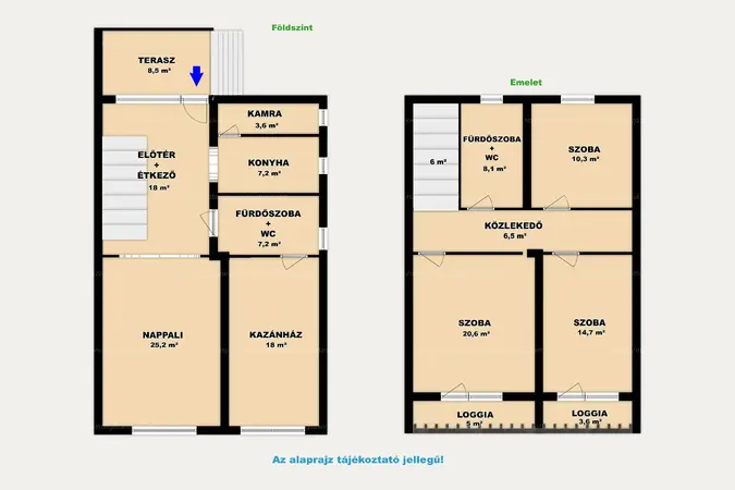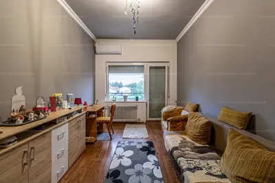 A nagyobb alapterületű lakrészben a földszinten egy tágas szobával, az emeleten három szobával rendelkezik, vegyes tüzelésű kazán+gázkazán fűtéssel, műanyag nyílászárókkal, redőnyökkel, valamint 2 hűtő-fűtő klímával.