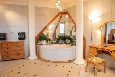 Az EXTRÁK közé tartozik a 8 beállós, FŰTÖTT GARÁZS elektromos autó TÖLTŐCSATLAKOZÓKKAL, parkosított környezet, saját erdő, modern TENISZPÁLYA (ADIDAS gyártói garanciával), 85 NM felületű süllyesztett ÚSZÓMEDENCE, és fedett GRILLEZŐ-PAVILON. Az ingatlan teljesen körbekerített, RIASZTÓ és BIZTONSÁGI RENDSZEREKKEL felszerelt.