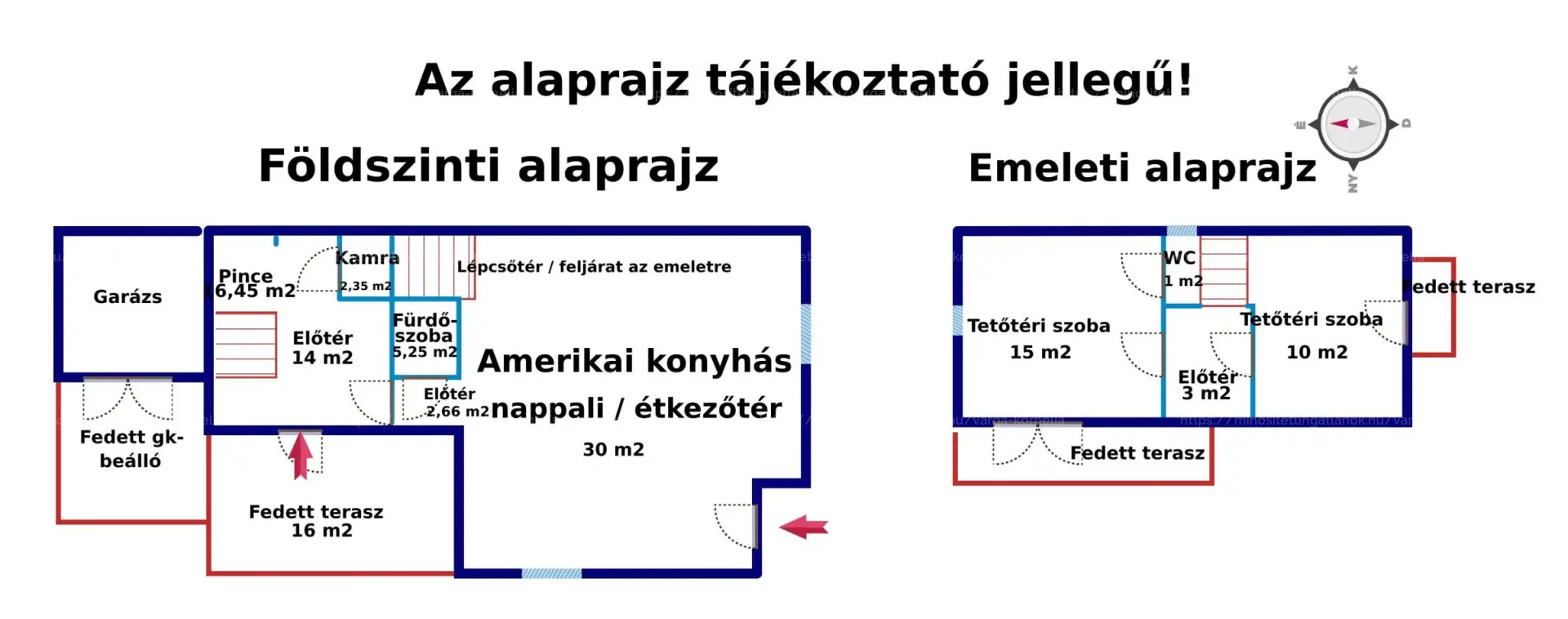 A tetőtérben 2 hatalmas hálószobát találunk, klímával és fedett teraszokkal felszerelve.