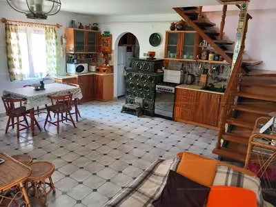 A téglából készült, stabil, szép állapotú ház cseréppel fedett és jól karbantartott, ablakai spalettásak. Kiegészítő helyiségei a garázs, fedett gépkocsibeálló, valamint egy igazi, téglával kirakott, boltíves borospince található rajta.