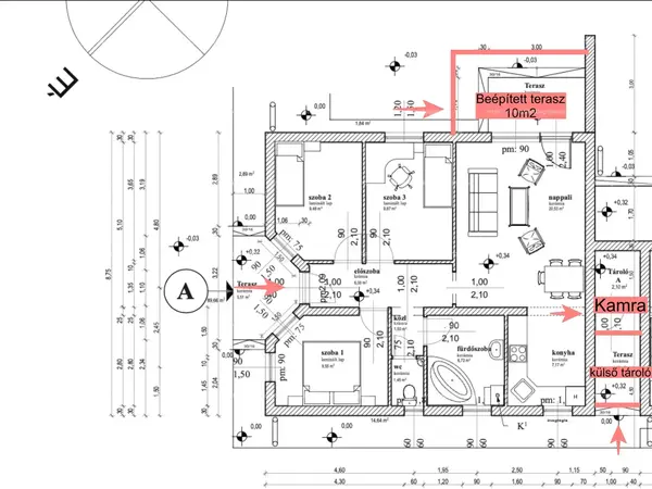 A terasz beépítésével jött létre a 4. különnyíló szoba, ami ugyan úgy megkapta kívülről a 10cm szigetelést és a műanyag nyílászárókat, mint az egész ingatlan.