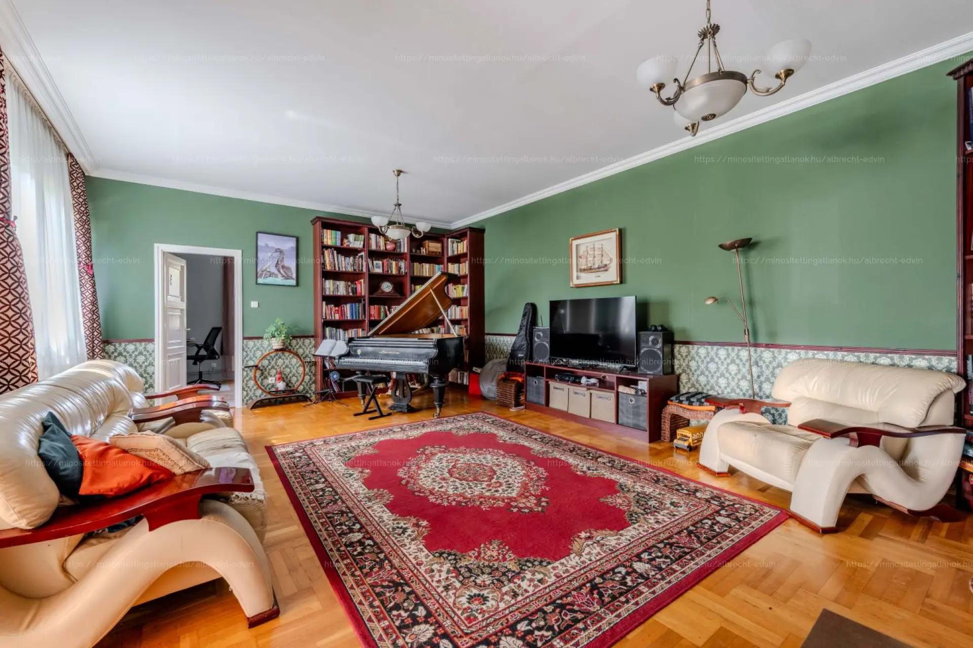 A telek 986 nm-es, jó alakú, széles utcafronttal, az épület pedig L alakú. A tetőn 10 cm kőzetgyapot lett beépítve, a meleget pedig cirkó kazán biztosítja mindenhol radiátorokkal. A földszinten minden szobában eredeti faparketta található, a ház régebbi részén fafödém, az újabb részén pedig betonfödém van.