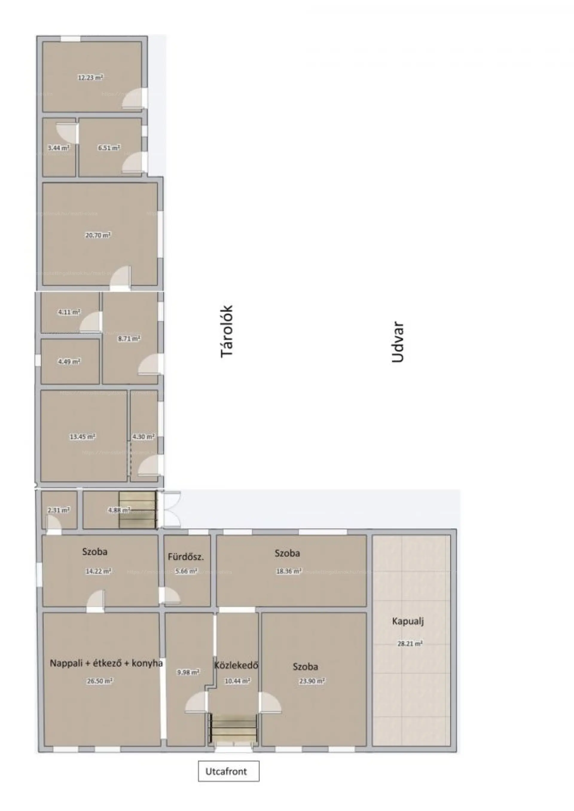 - Főépület: 120 nm, szinte teljesen ALÁPINCÉZETT, 80 nm SZUTERÉN