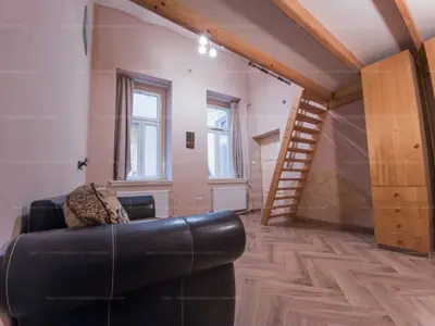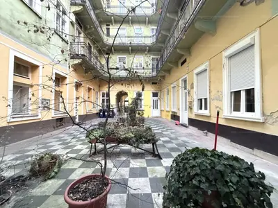A lakásba lépve a konyhabútorral, elektromos sütővel, főzőlappal felszerelt tágas konyhába érkezünk. Innen nyílik minden helység, a szobák külön nyílóak, udvarra néző ablakosak, a 18,5 m2 szoba déli tájolású, járólappal burkolt, 8 m2 alapterületű álló galériával. A másik szoba a bejárattól balra helyezkedik el, keleti tájolású, laminált parkettával burkolva, 6 m2 alapterületű álló galériával. A 466 cm-es belmagasságnak köszönhetően a galériákkal a lakás összesen közel 60 m² életteret kínál. A fürdőszoba mosdóval, zuhanykabinnal, törölköző szárítóval felszerelt, a toalettel egy helységben kapott helyet. Az otthon melegéről és a meleg vízről MIKA 6E parapetes kombi kazán gondoskodik radiátorral, 120 literes indirekt tárolóval a melegvízhez, vízórával felszerelt lakás. A lakás felújításon esett át, megtörtént a falnedvesség megszüntetése injektálással + légpórus vakolattal (VIP-REX UNI), 2 rétegű műanyag nyílászárók kerültek a régiek helyére, új szanitereket, burkolatot, külső-belső festés kapott.