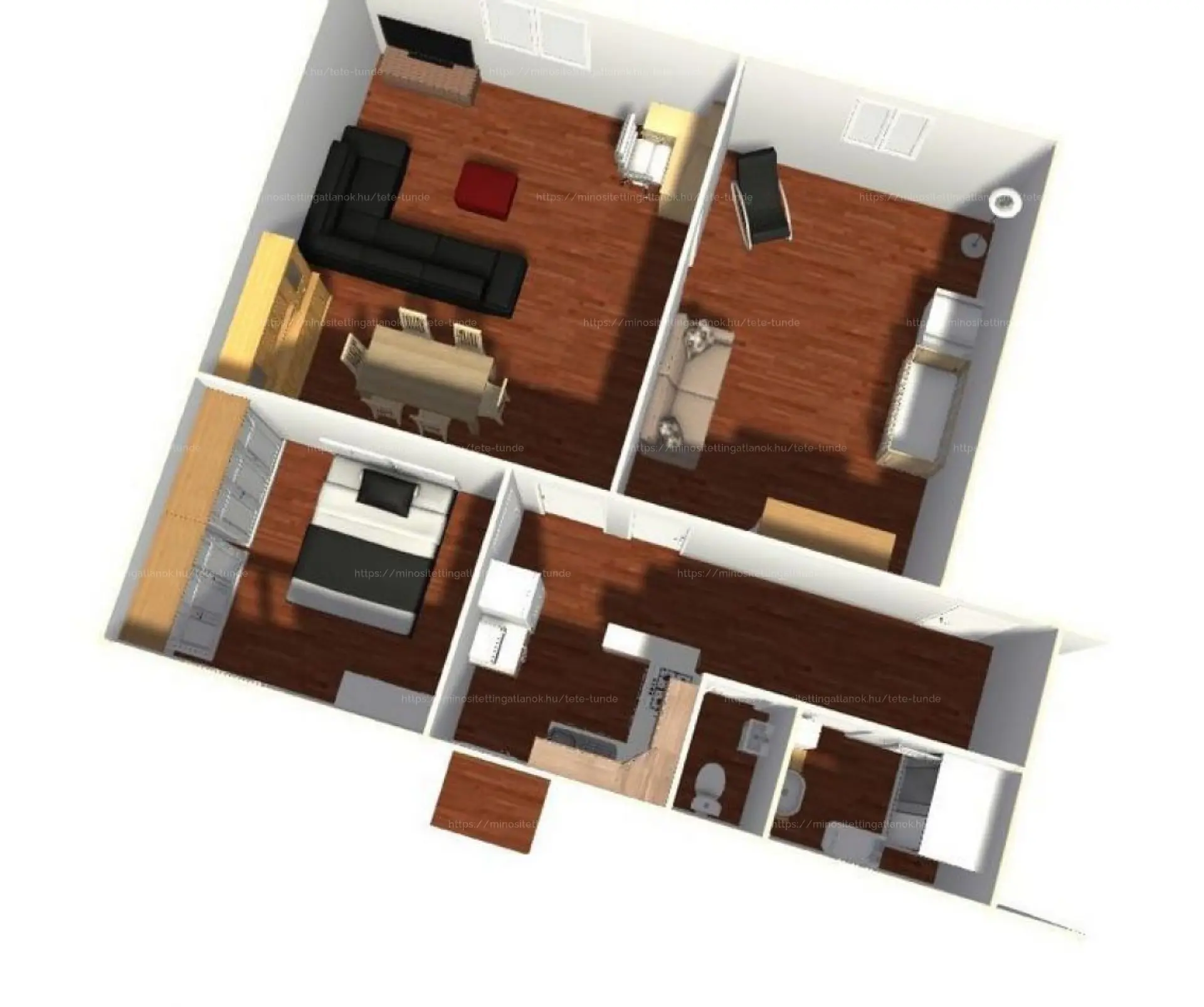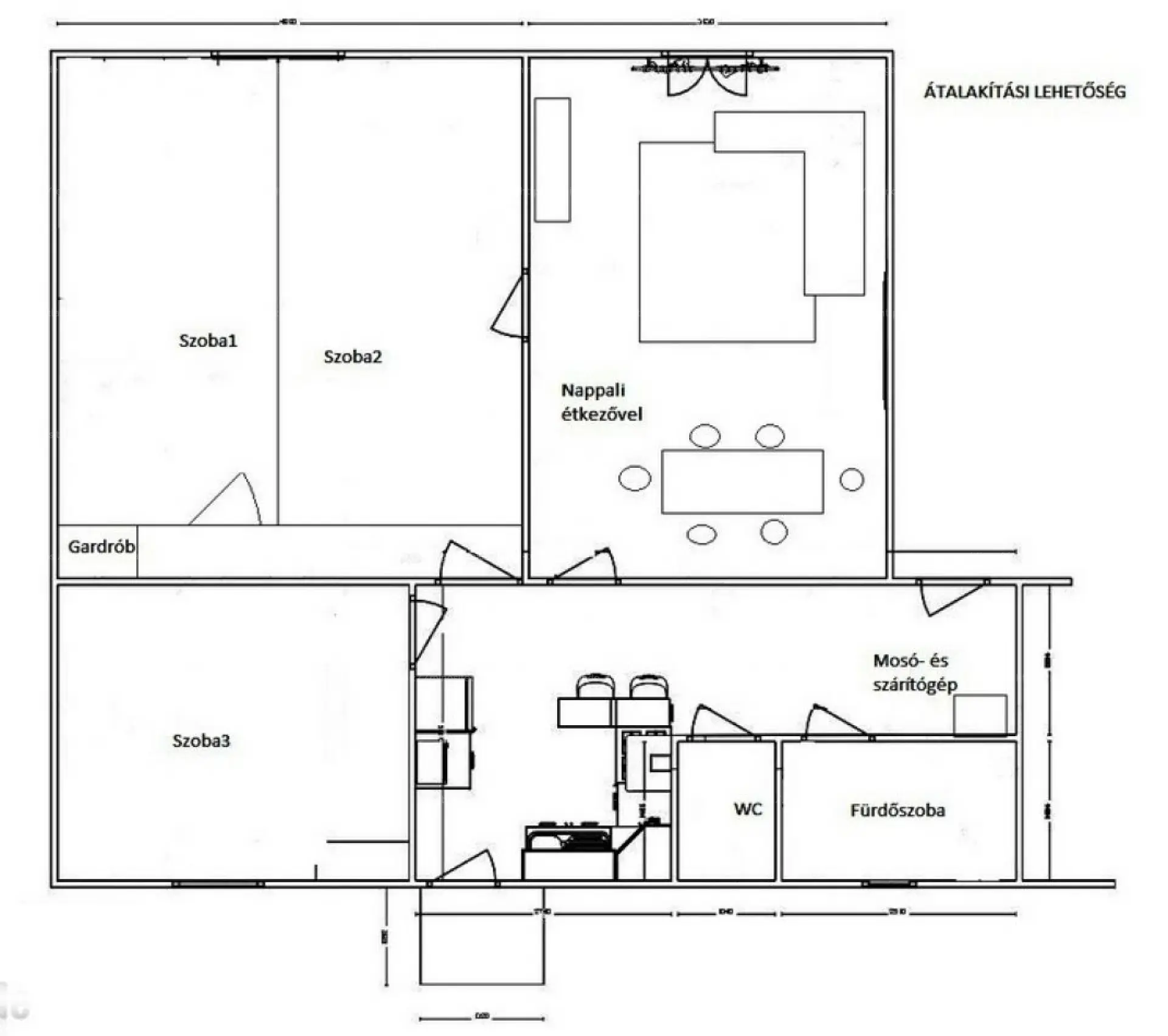 A szobák méreteiből adódóan, kis ráfordítással átalakítható Nappali + 3 szobássá.