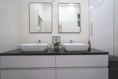 A lakás 3,80 m belmagasságú, a fűtésről és melegviz ellátásról Ariston kondenzációs kazán gondoskodik.