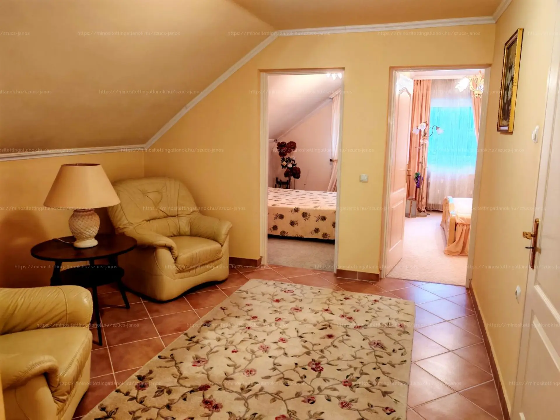 -Emeleten: nappali, 2 szoba, kádas fürdőszoba, közlekedő