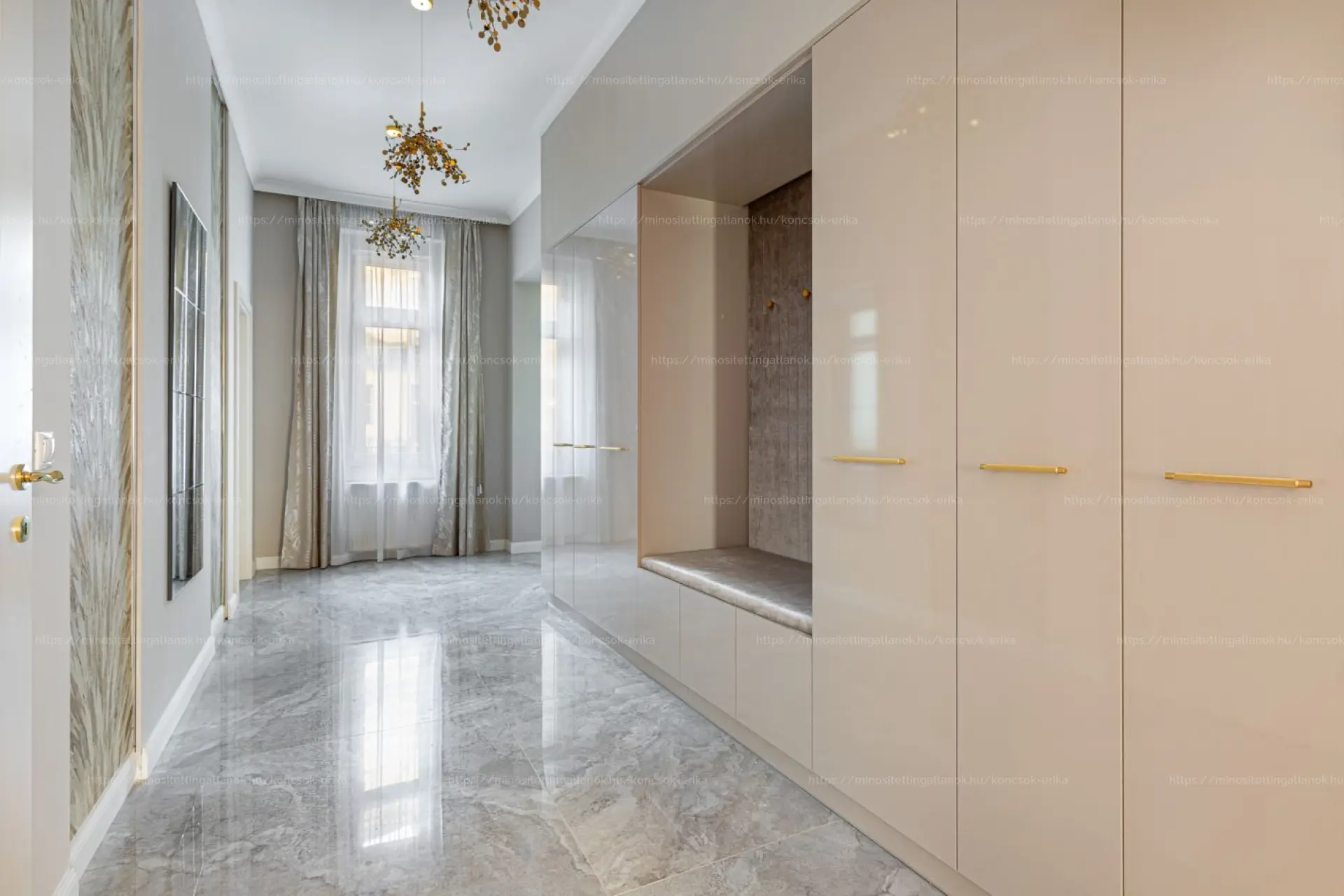 Az ingatlan prémium minőségű felújításon esett át, melynek során a legkiválóbb minőségű anyagokat használták fel, a lakás minden részletében az eleganciát tükrözi. Designer csillárok, beépített szekrények, minőségi szaniterek és prémium burkolatok kerültek beszerelésre.