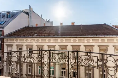 - helyiségei: hatalmas konyha és étkező, külön nappali erkéllyel, a fő hálószoba szintén erkélyes és saját, káddal felszerelt fürdőszobával rendelkezik, utcai nézetű