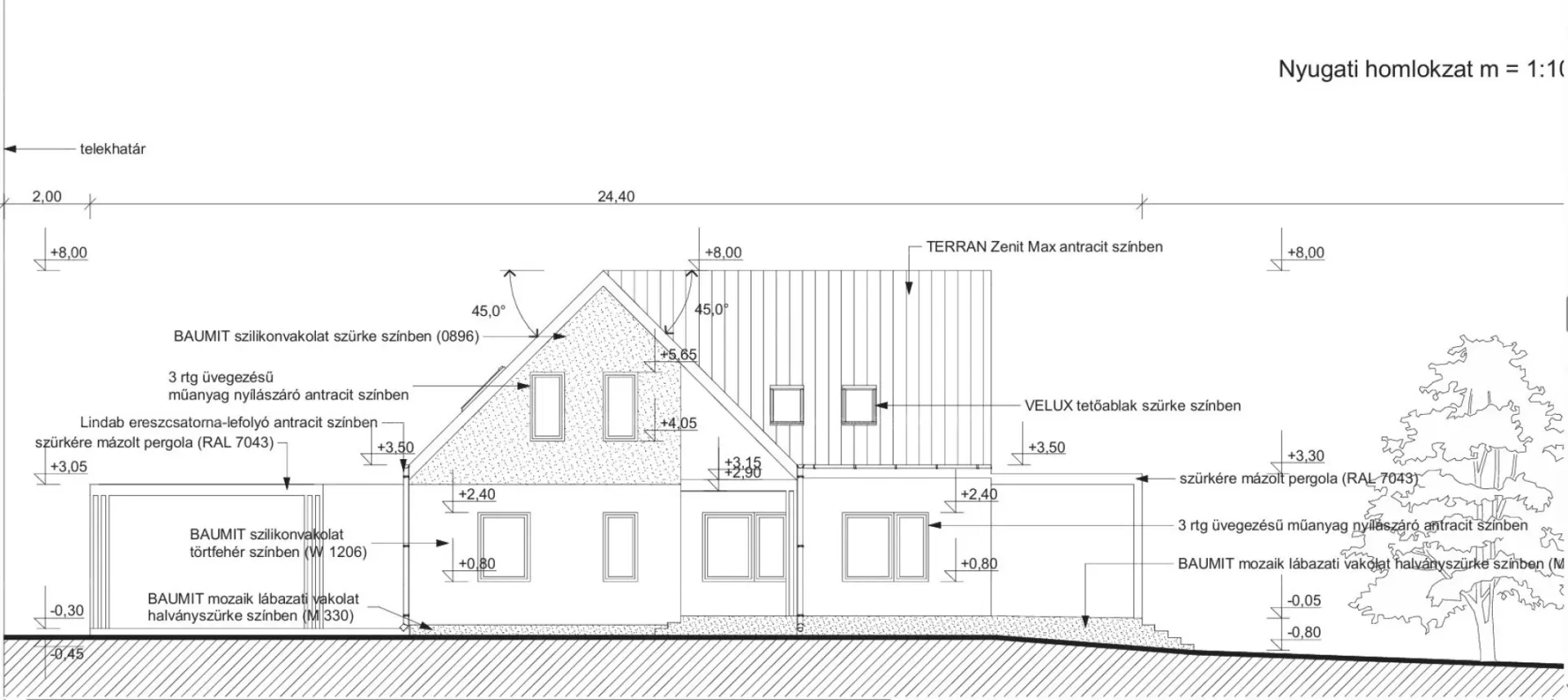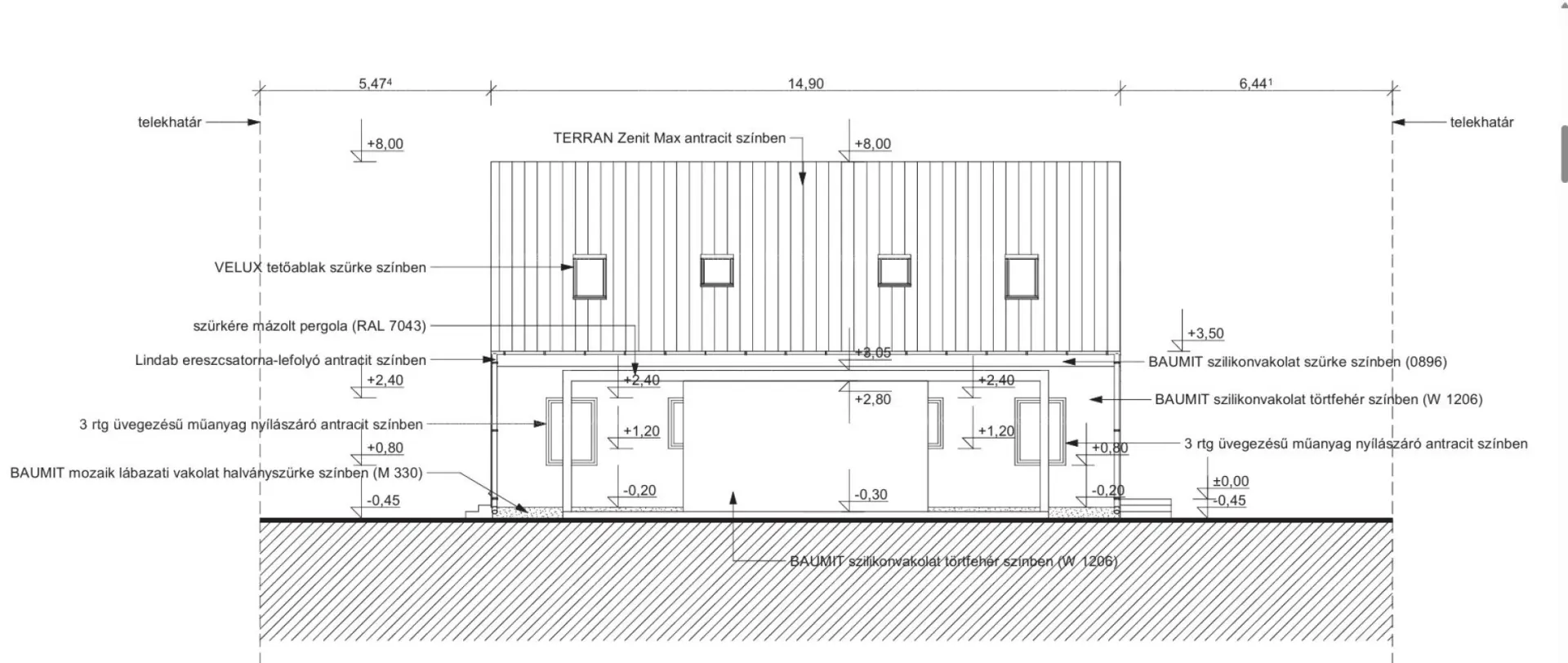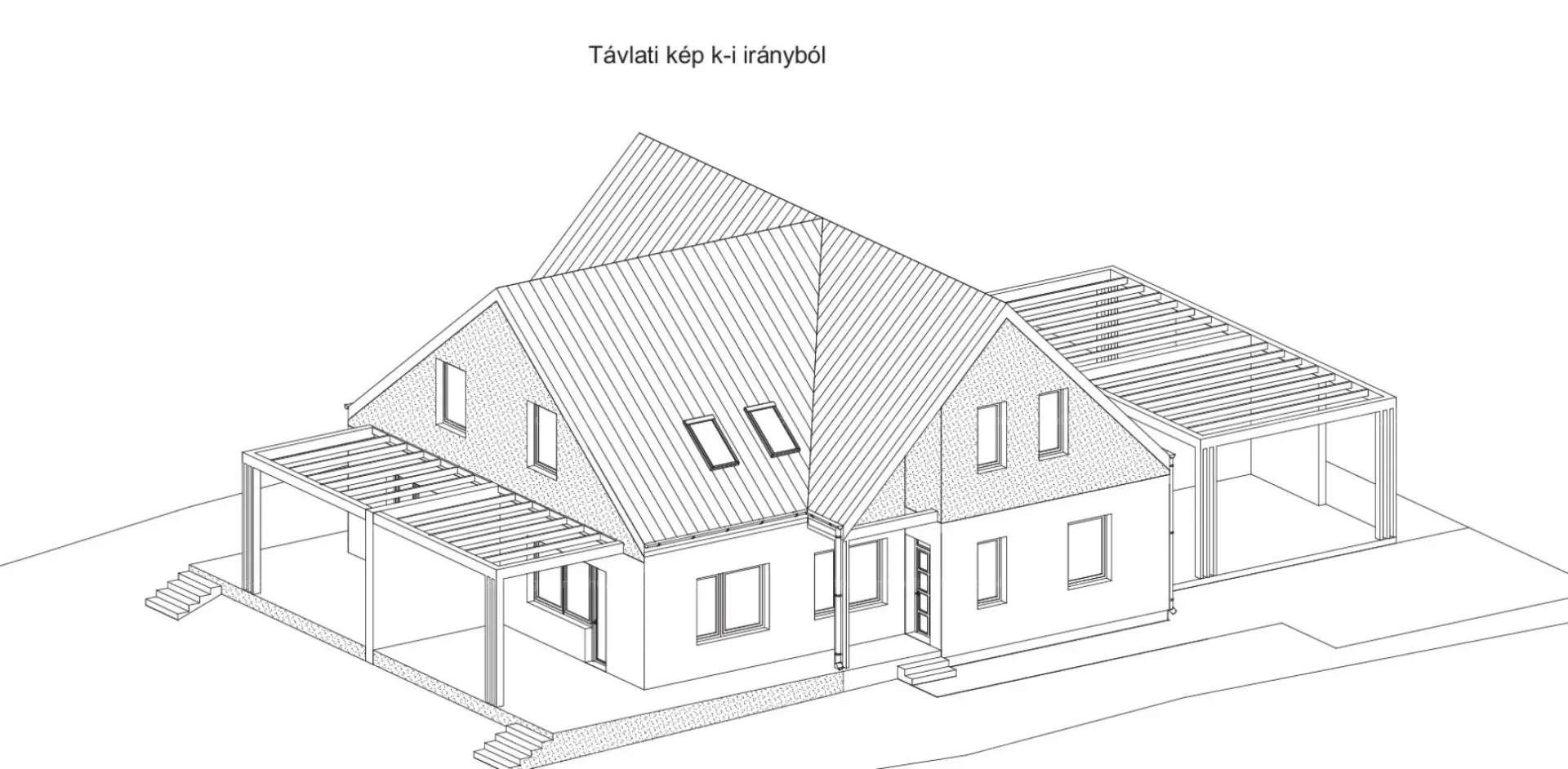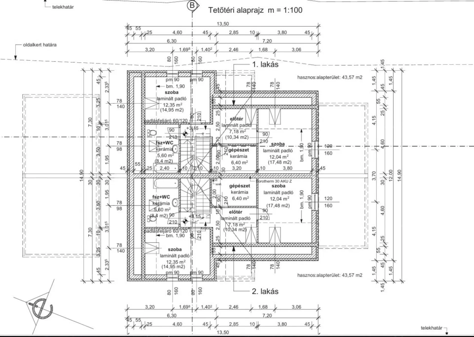 Emelet: hasznos alapterülete: 44 nm (bruttó 57 nm), 2 hálószoba, fürdő, Wc, előtér kerül kialakításra.