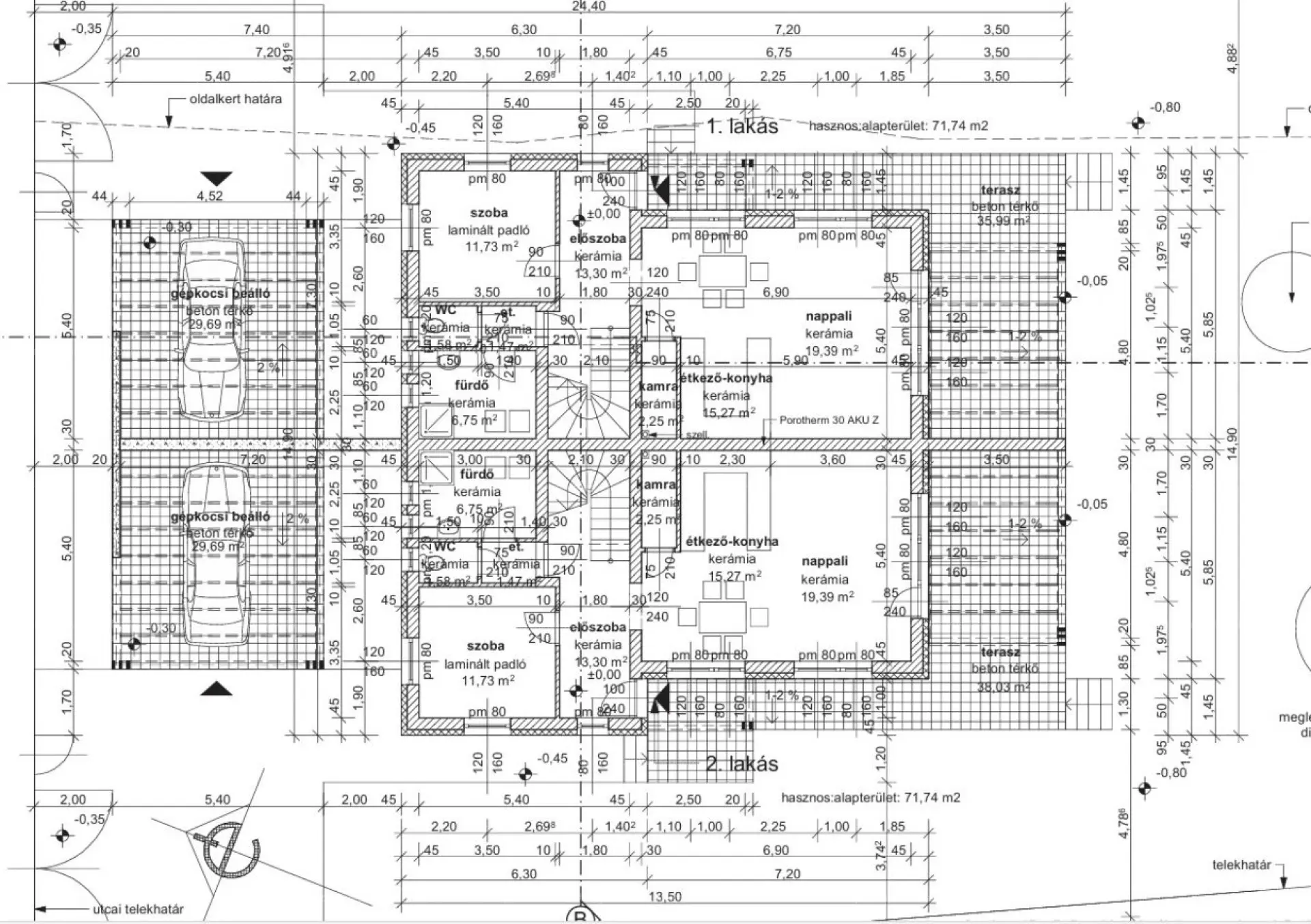 A földszint lakható alapterülete 62 nm melyben egy előszoba, amerikai konyha étkező nappali, 1 hálószoba, fürdő, Wc, spájz,+ egy 36 nm-es terasz és + egy 30 nm-es autóbeállási lehetőség kerül megépítésre