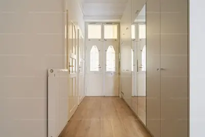 A különleges eredeti ajtókat aprólékos munkával dolgozták meg, hogy a modernizált polgári formájukat megkapják.