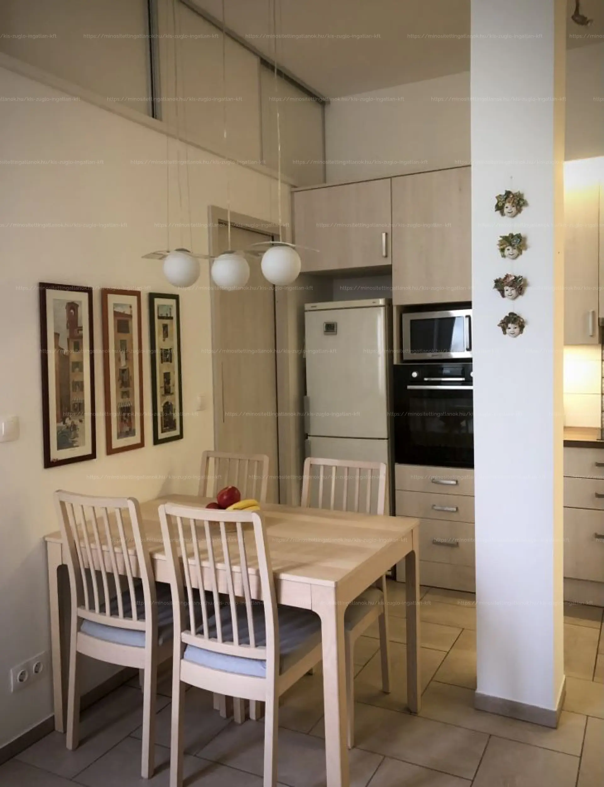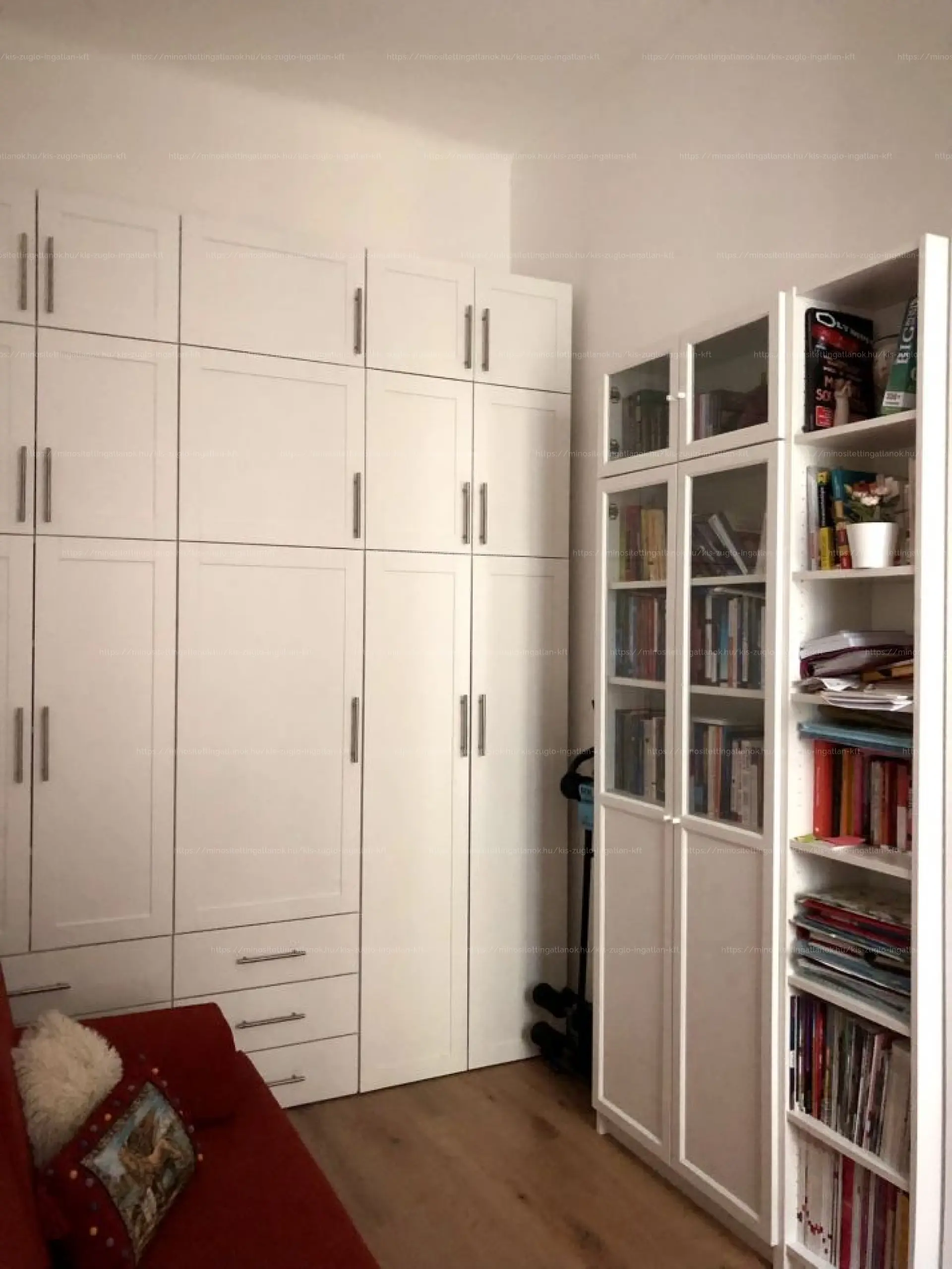 A lakásban található egyedi gyártású konyhabútor, fürdőszobabútor és előszobai gardrób szintén a vételár része.
