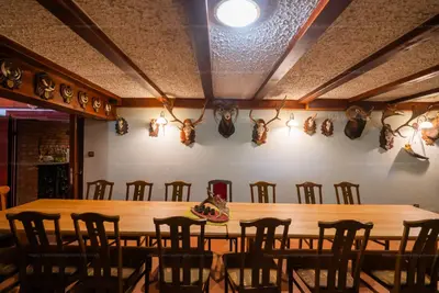 Pince szint: Vadászterem kandallóval, borospince, wellness részleg (jakuzzi, szauna)