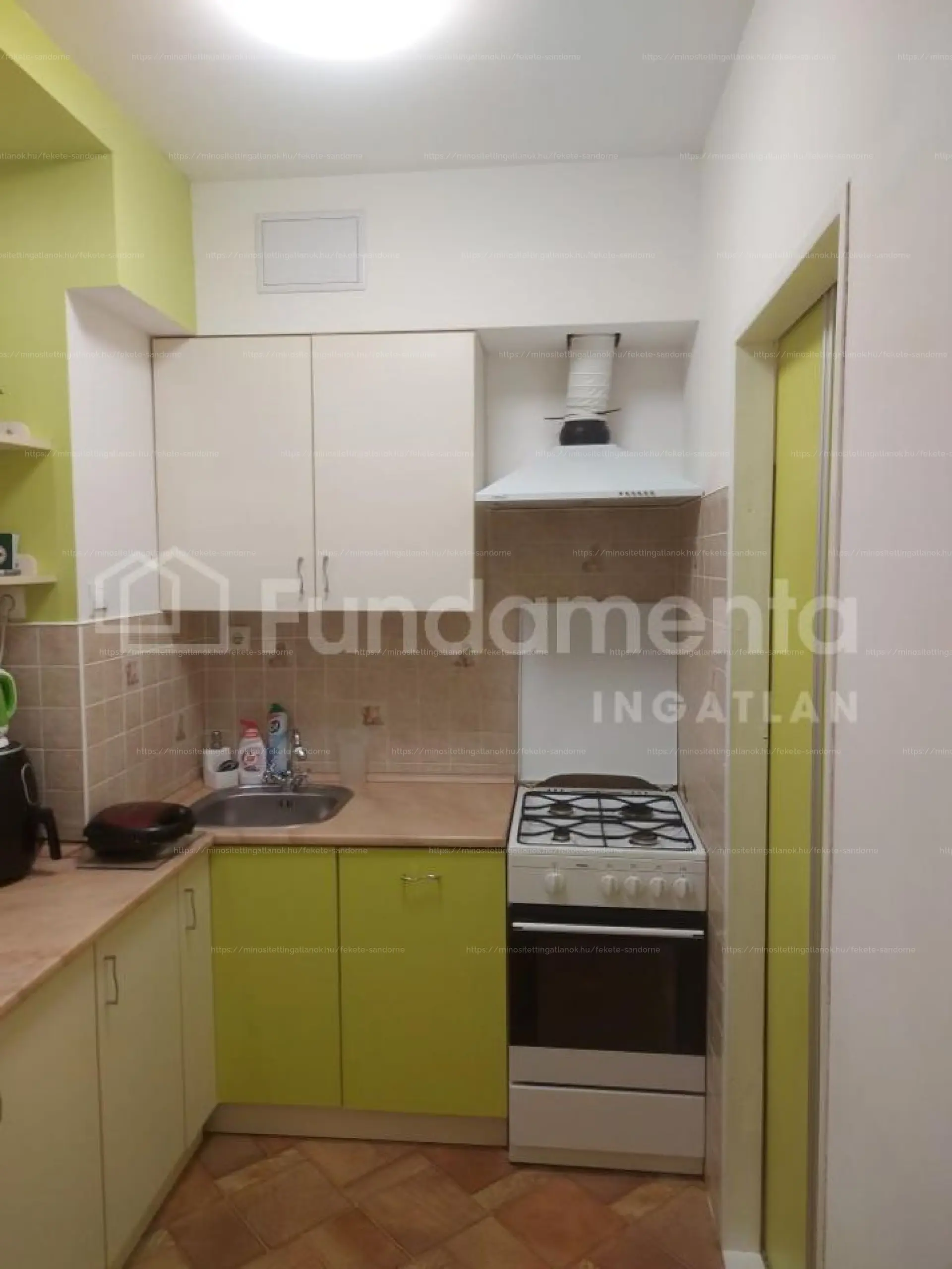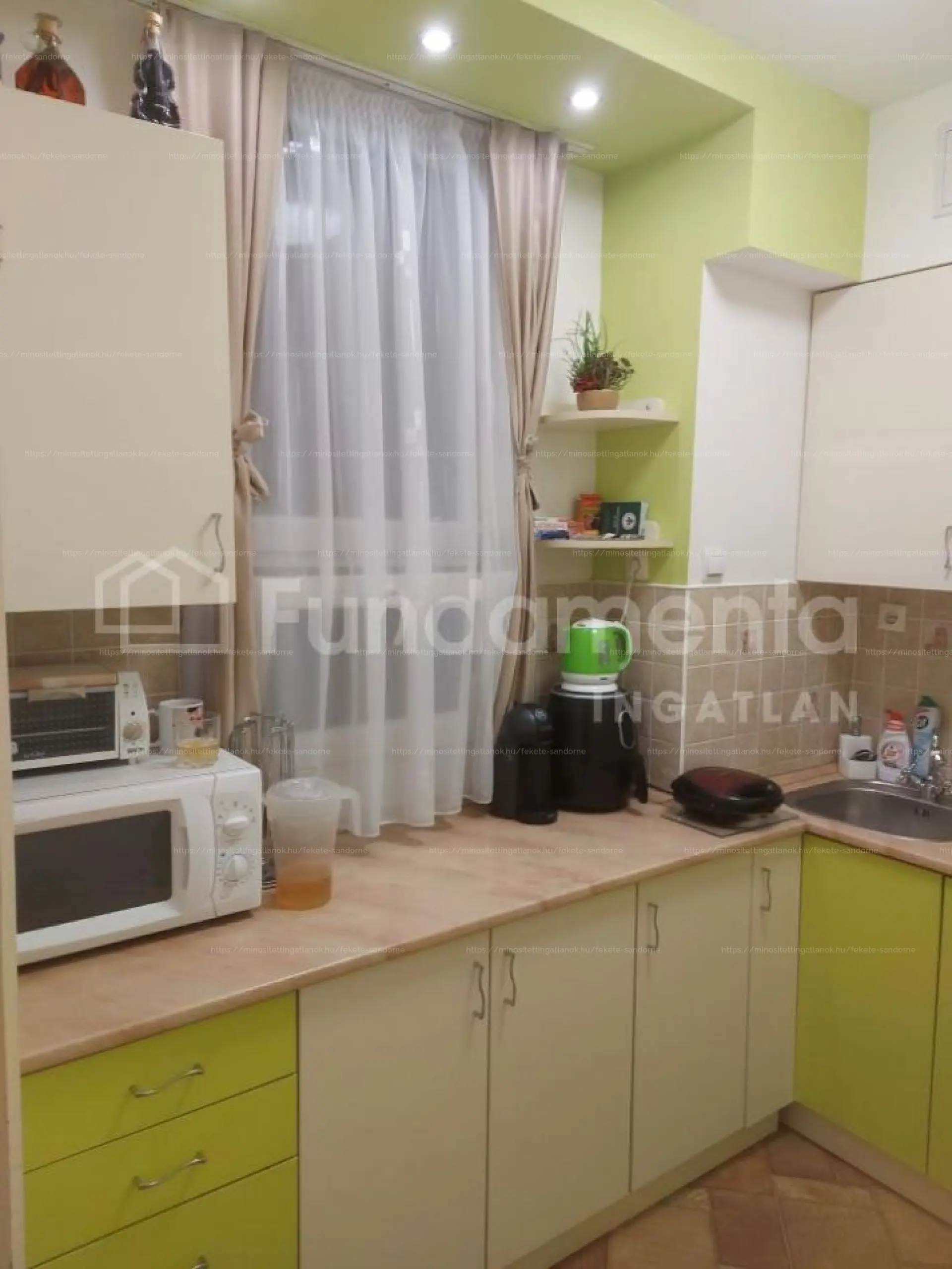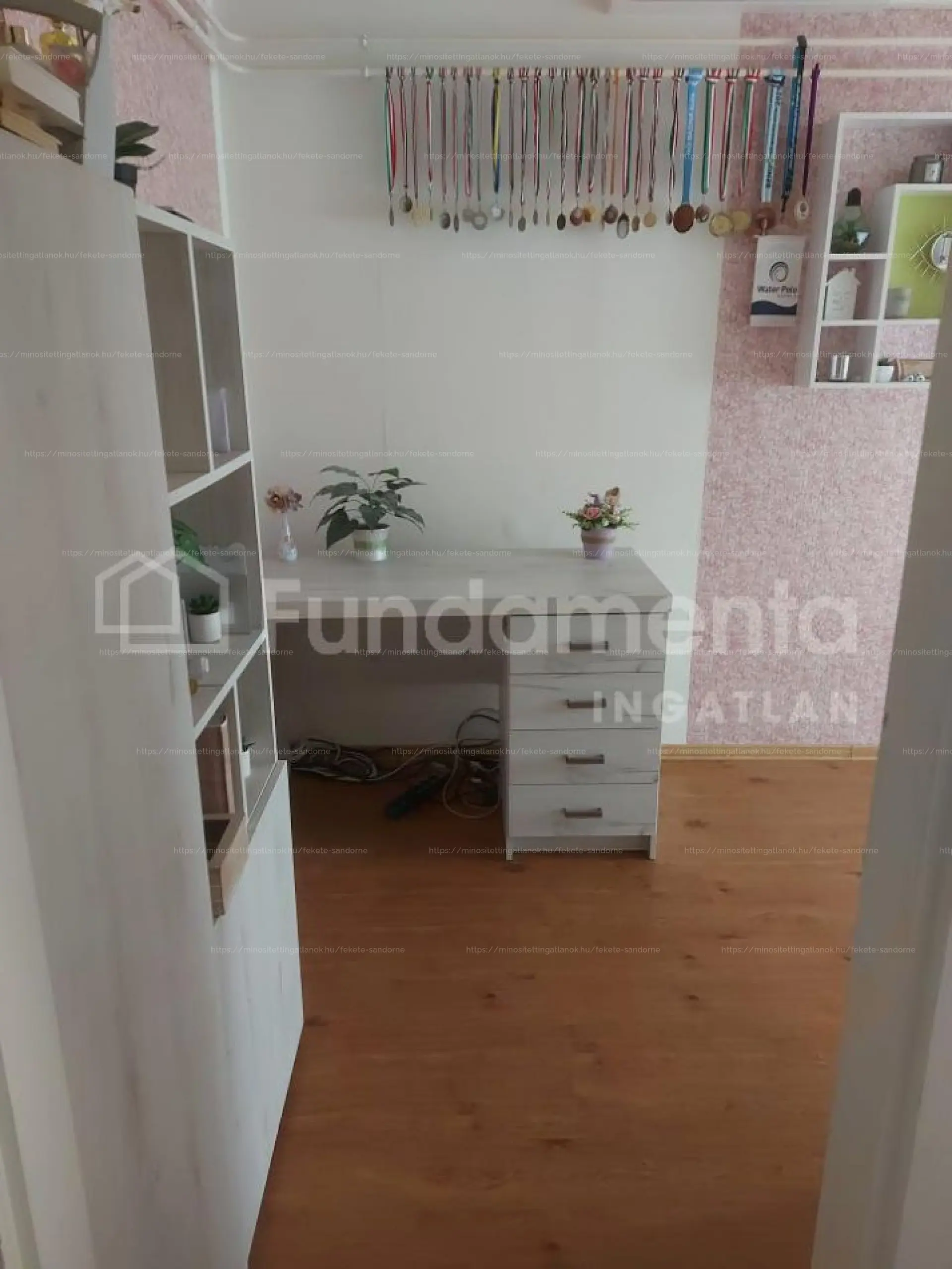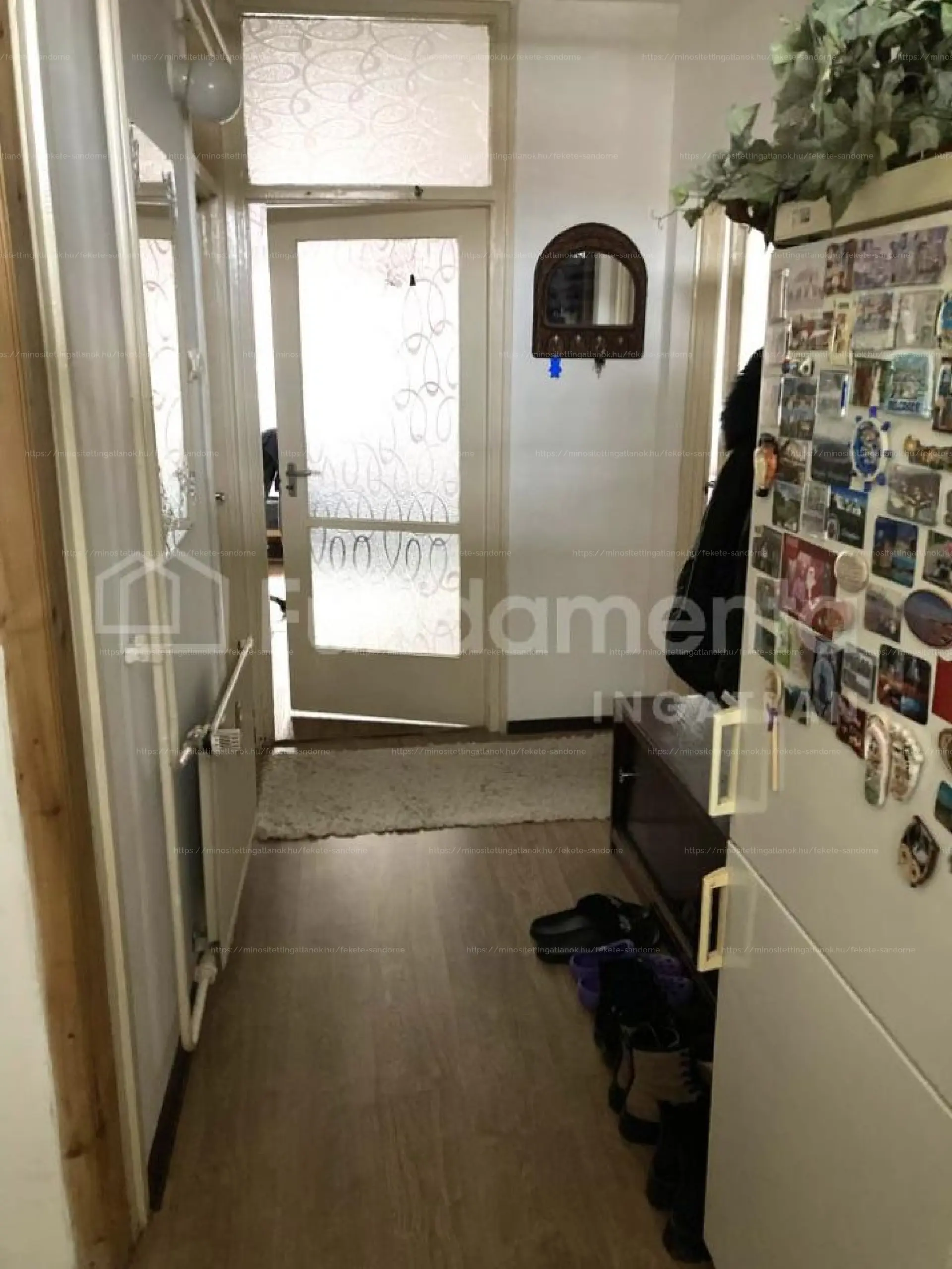 A lakás eredetileg két egész szobás volt, azonban az egyik helyiség gipszkarton fallal két félszobára lett osztva, így most egy tágas nappali/szoba és két kisebb háló áll rendelkezésre. A fürdőszoba toalettel egy helyiségben található, a konyha mellett pedig külön mosókonyha kapott helyet, amely szintén saját WC-vel rendelkezik – praktikus elrendezés mindennapi használatra.