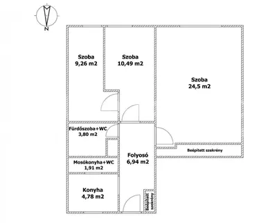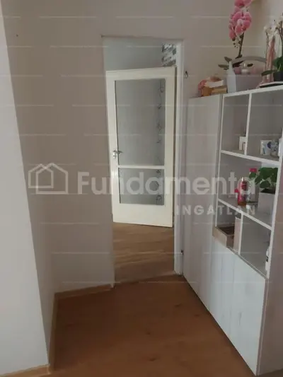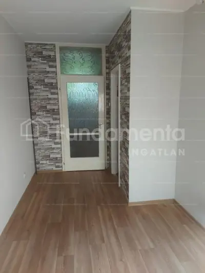 A lakás eredetileg két egész szobás volt, azonban az egyik helyiség gipszkarton fallal két félszobára lett osztva, így most egy tágas nappali/szoba és két kisebb háló áll rendelkezésre. A fürdőszoba toalettel egy helyiségben található, a konyha mellett pedig külön mosókonyha kapott helyet, amely szintén saját WC-vel rendelkezik – praktikus elrendezés mindennapi használatra.