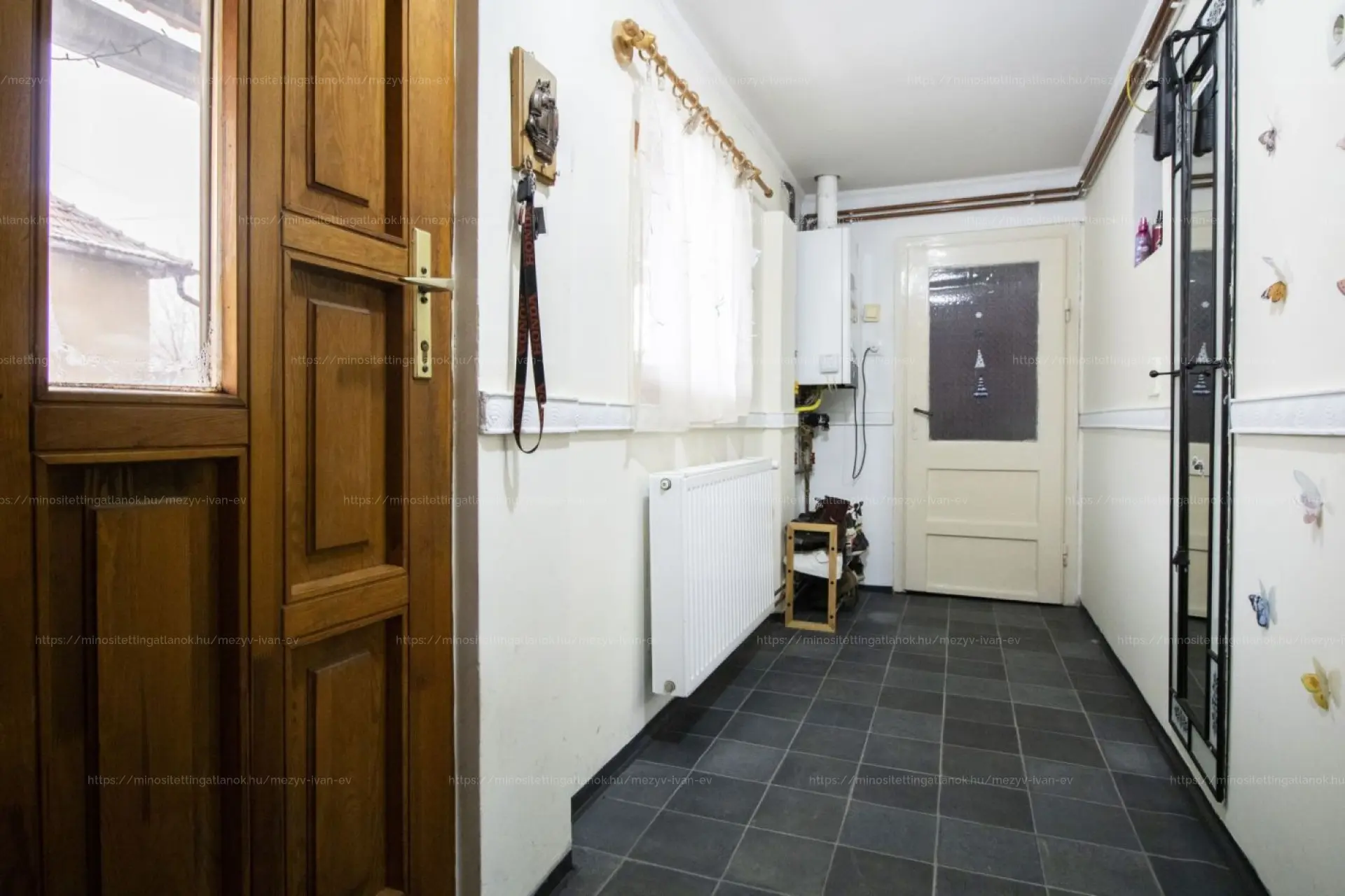 A meleget kombikazán szolgáltatja radiátoros hőleadással, a villamoshálózat új, 32 Amperes kapacitással. A nyílászárók fakeretesek, dupla üvegezésűek, redőnnyel felszerelve, a bejárati ajtó szintén új. A ház jó állapotú, nem vizesedő, kiváló állapotú falazattal rendelkezik, a tetőszerkezet megbízható, fagerendás födémmel és gondosan végzett szigeteléssel.