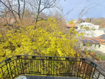 A lakás erkélyéről télen látni a Gül Baba Türbéjét, nyáron a zöldellő fák látványa fogad.