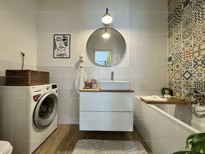* Fürdő: beépített Geberit WC tartály, IKEA mosdószekrény, törölközőszárítós radiátor, automata szellőző, padlófűtés