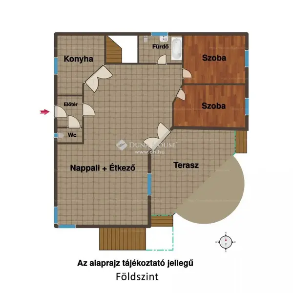 Nappali: 39 m² innen nyílik a 15 m²-es terasz ( ami egyben védelmet nyújt a fölszinti teraszrésznek is)