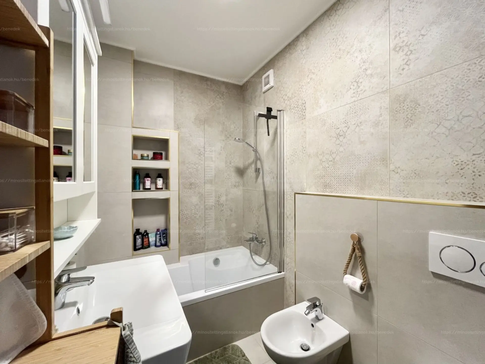 A 35 m²-es terasz igazi ékköve az ingatlannak: panorámás, zöldre néző, déli fekvésű, és ideális helyszín pihenésre vagy baráti vacsorákra.