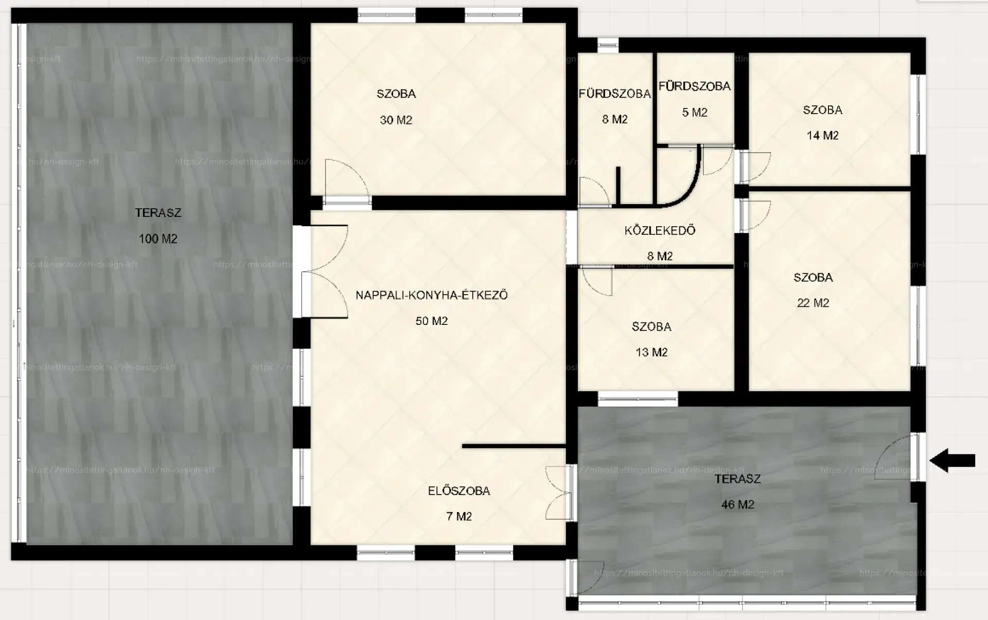 >> két hatalmas fedett terasz: 100 m² és 46 m²