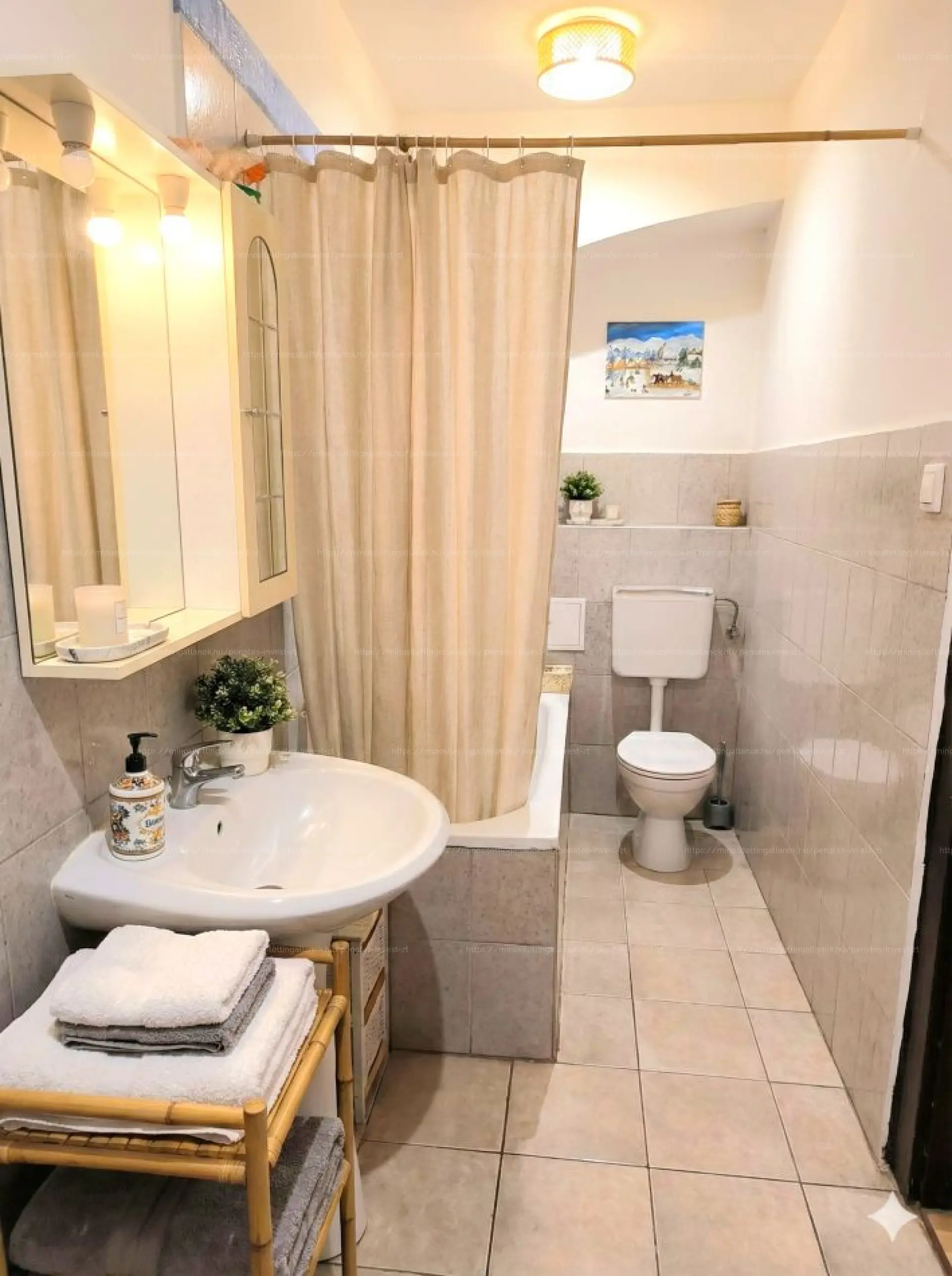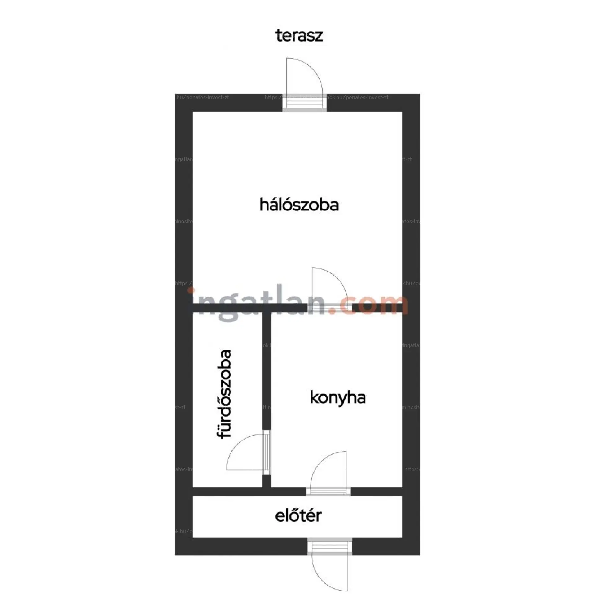 - Konyha, közlekedő, tágas szoba és fürdő+WC alkotja a praktikus elrendezést
