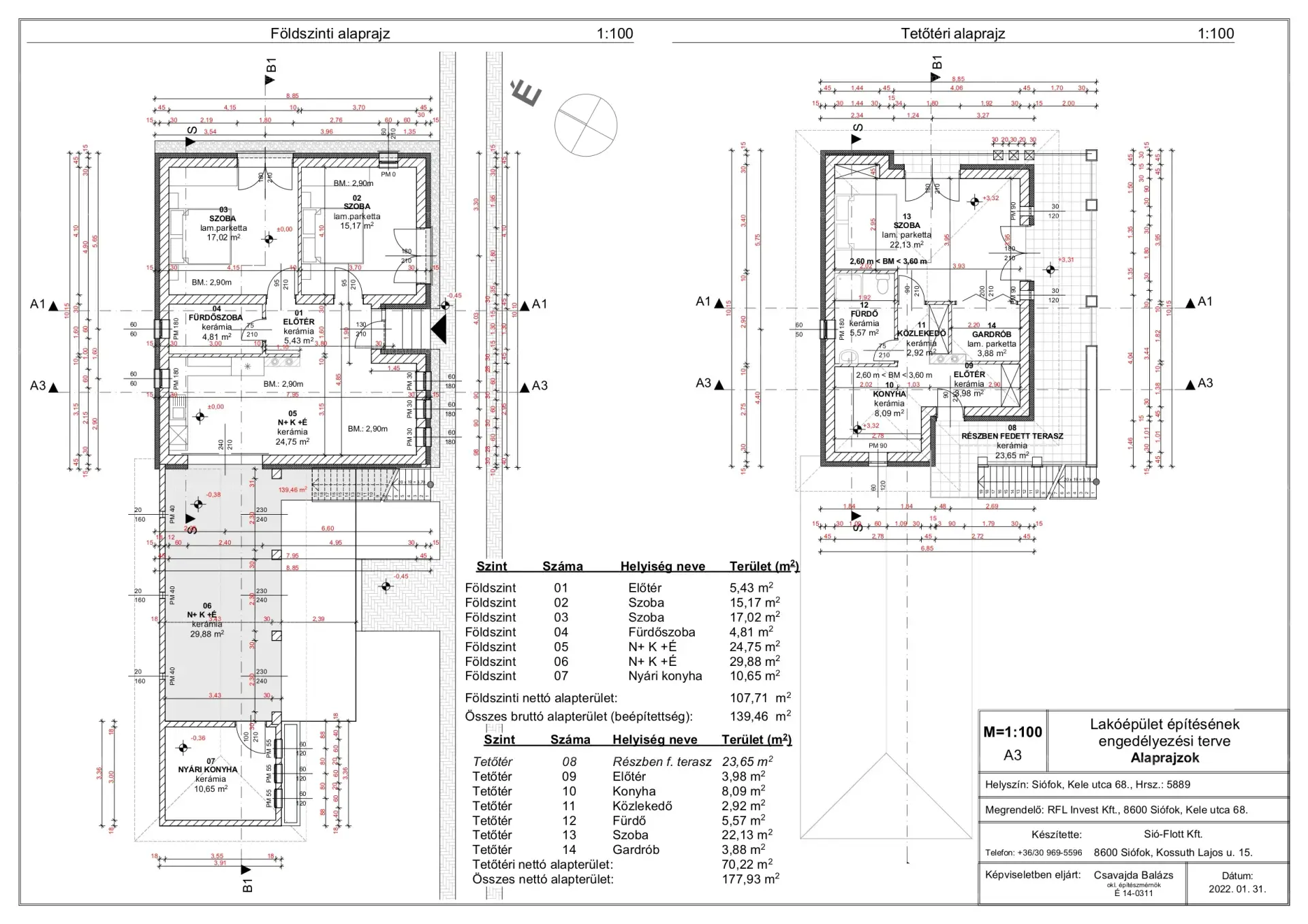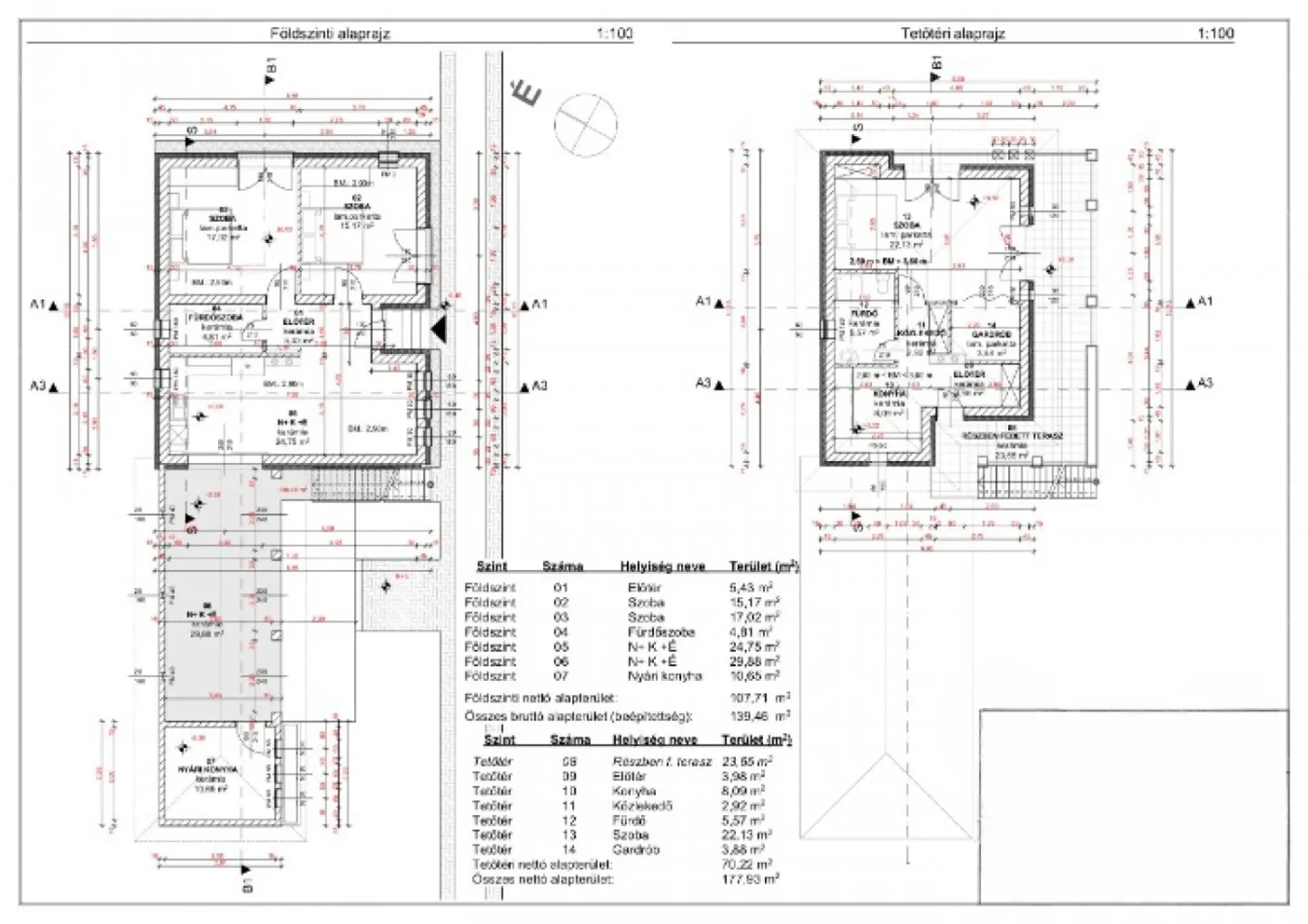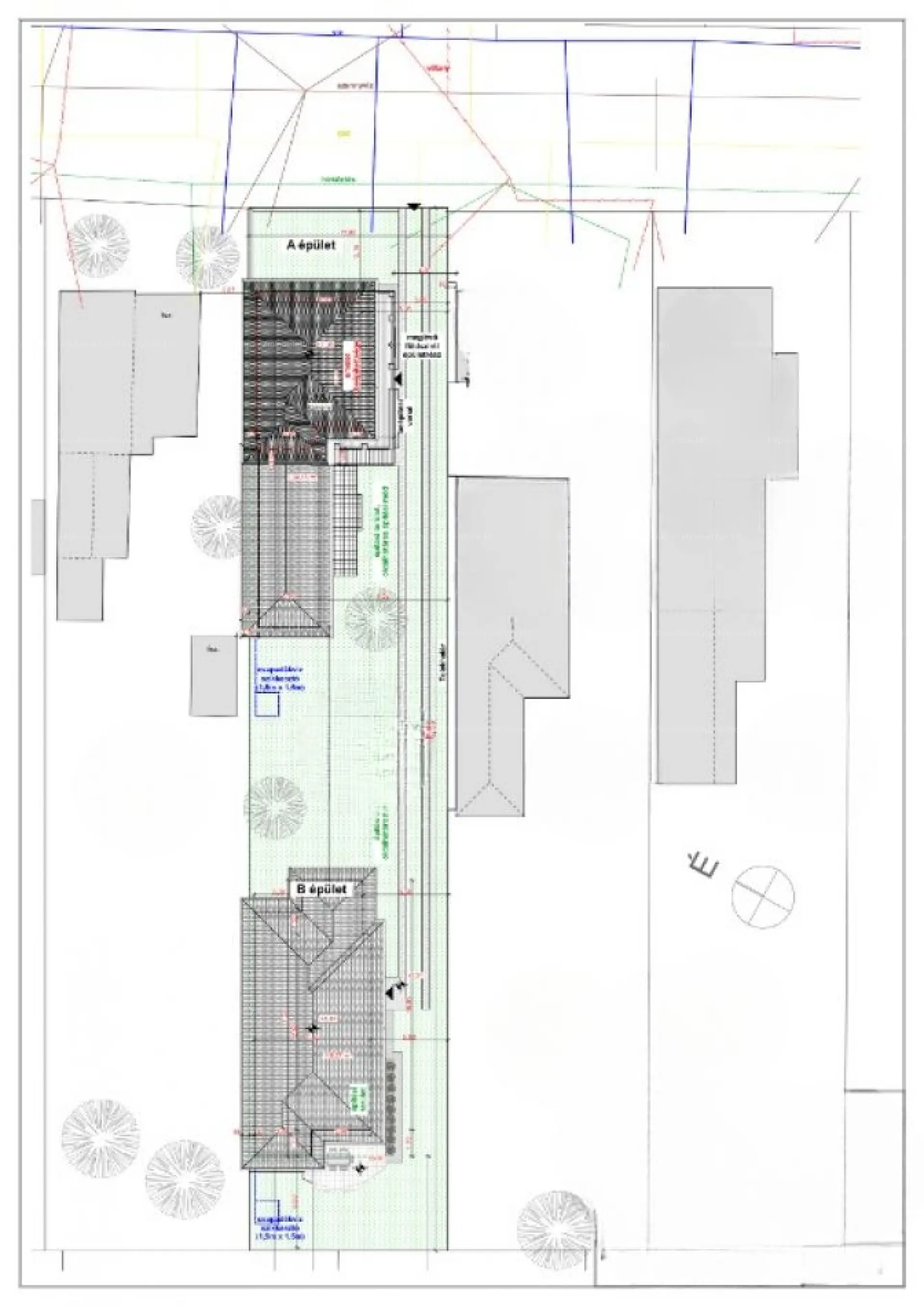 Az "A" utcafronti épület földszint + tetőtér kialakítású, az 1970-es években épült. Mérete: 117,93 m2. Az átépítési TERVEK rendelkezésre állnak és ENGEDÉLYEZETTEK; a jelenlegi állapot szerint: már bútorozatlanul várja a munkálatok megkezdését. Alaprajzi elosztás: 3 szoba, nappali-konyha-étkező, két fürdőszoba, gardrób, nyárikonyha. A fotók és tervek mellékelve megtalálhatók a galériában.