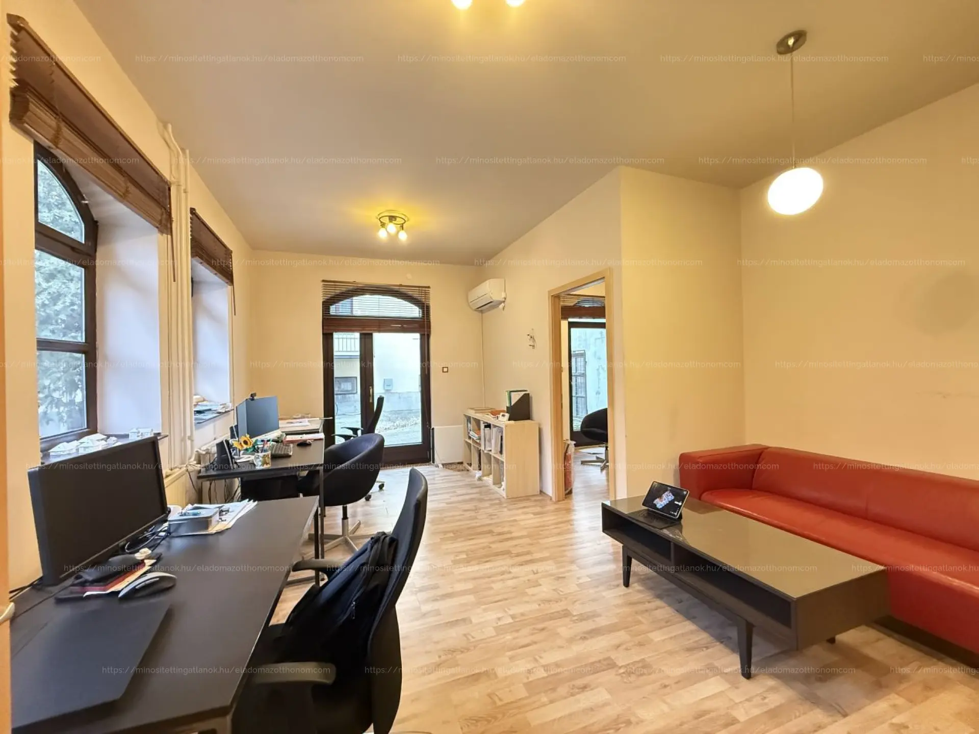 Pécs belvárosában, az ikonikus Király utcában, de egy ősfás, zárt, nagy udvarban eladó ez a sok lehetőséget tartogató, jelenleg építészirodaként funkcionáló, de akár két teljesen külön lakás kialakítására is alkalmas, 2012-ben felújított ingatlan.