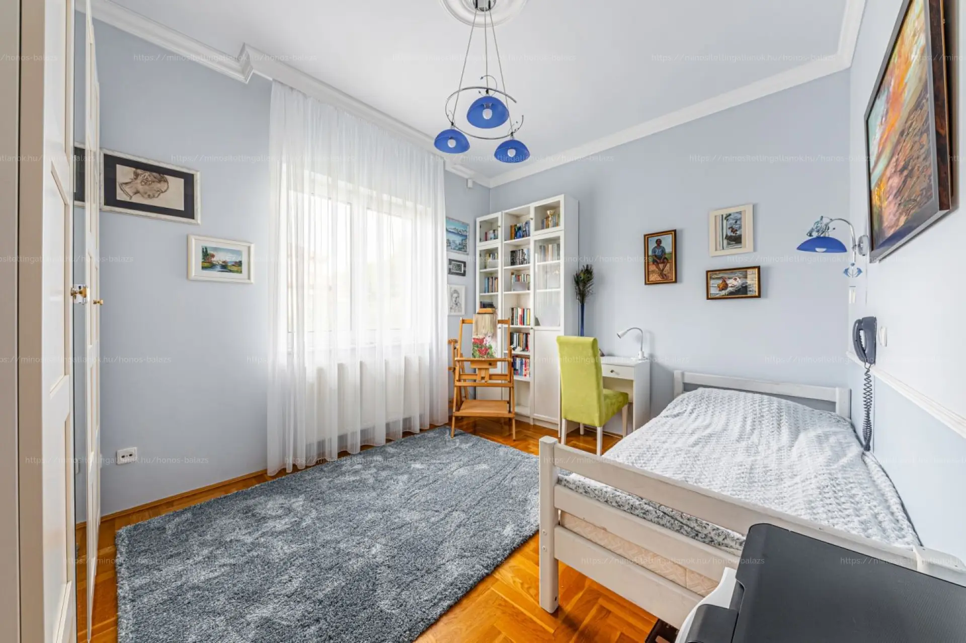 Az épület minden részlete átgondolt koncepciót tükröz. A bejárati szinten tágas, kétállásos garázs, háztartási helyiség, vendégszoba és több tároló helyiség található, egyikük akár szaunaként is hasznosítható. A fő élettér a földszinten kapott helyet, ahol a nagyvonalú, amerikai konyhás nappali természetes fényben fürdik. Három hálószoba, két fürdőszoba és a kertkapcsolatos terasz alkotják az otthon központi életterét. A tetőtér jelenleg nem beépített, de méretei további lakóhelyiségek kialakítását is lehetővé teszik.