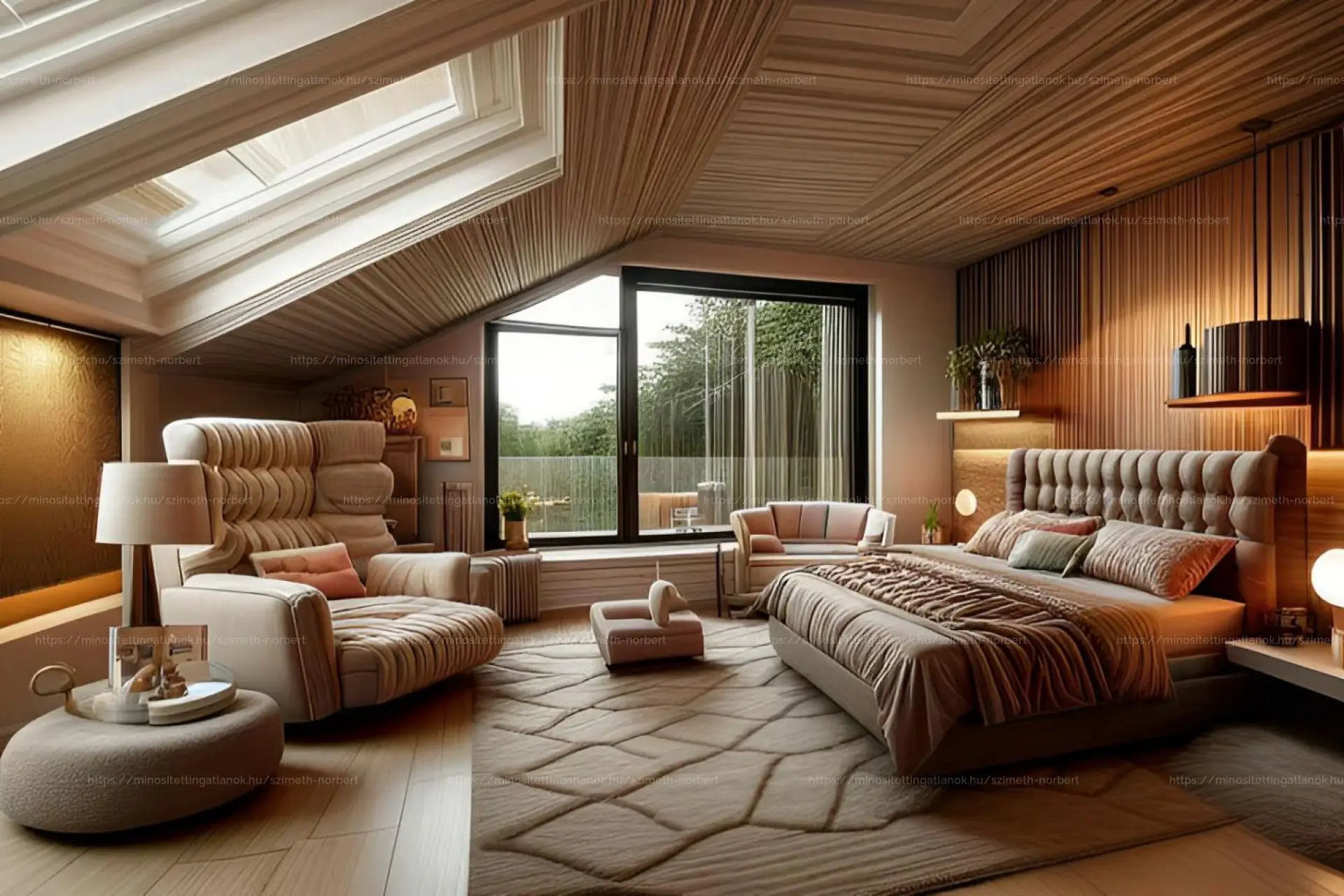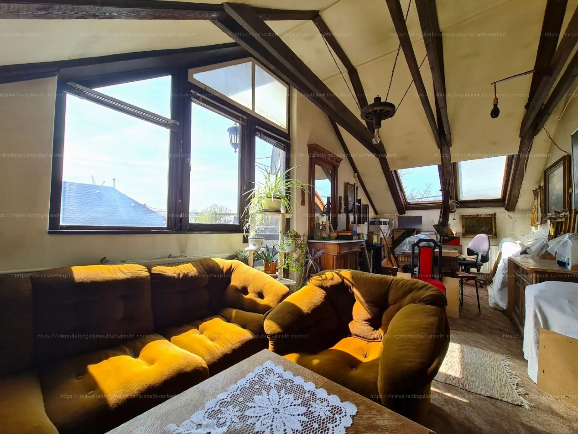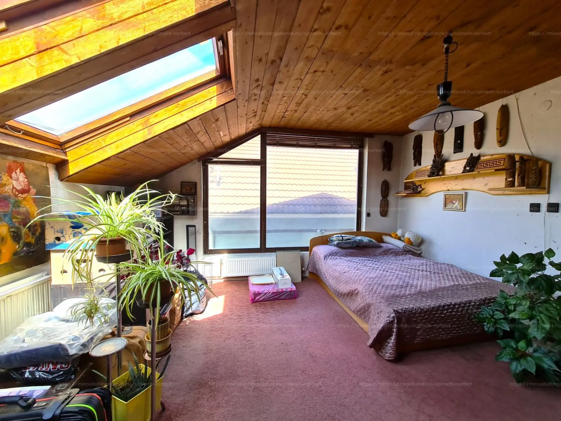 A tetőtér igazi kincs egy festőművész által berendezett műterem, ahol a hatalmas ablakfelületeken át egész nap beáradó napfény tökéletes közeget teremt a kreatív alkotáshoz. A hálószoba pedig nem csupán pihenőhely, hanem maga a nyugodt inspiráció forrása.