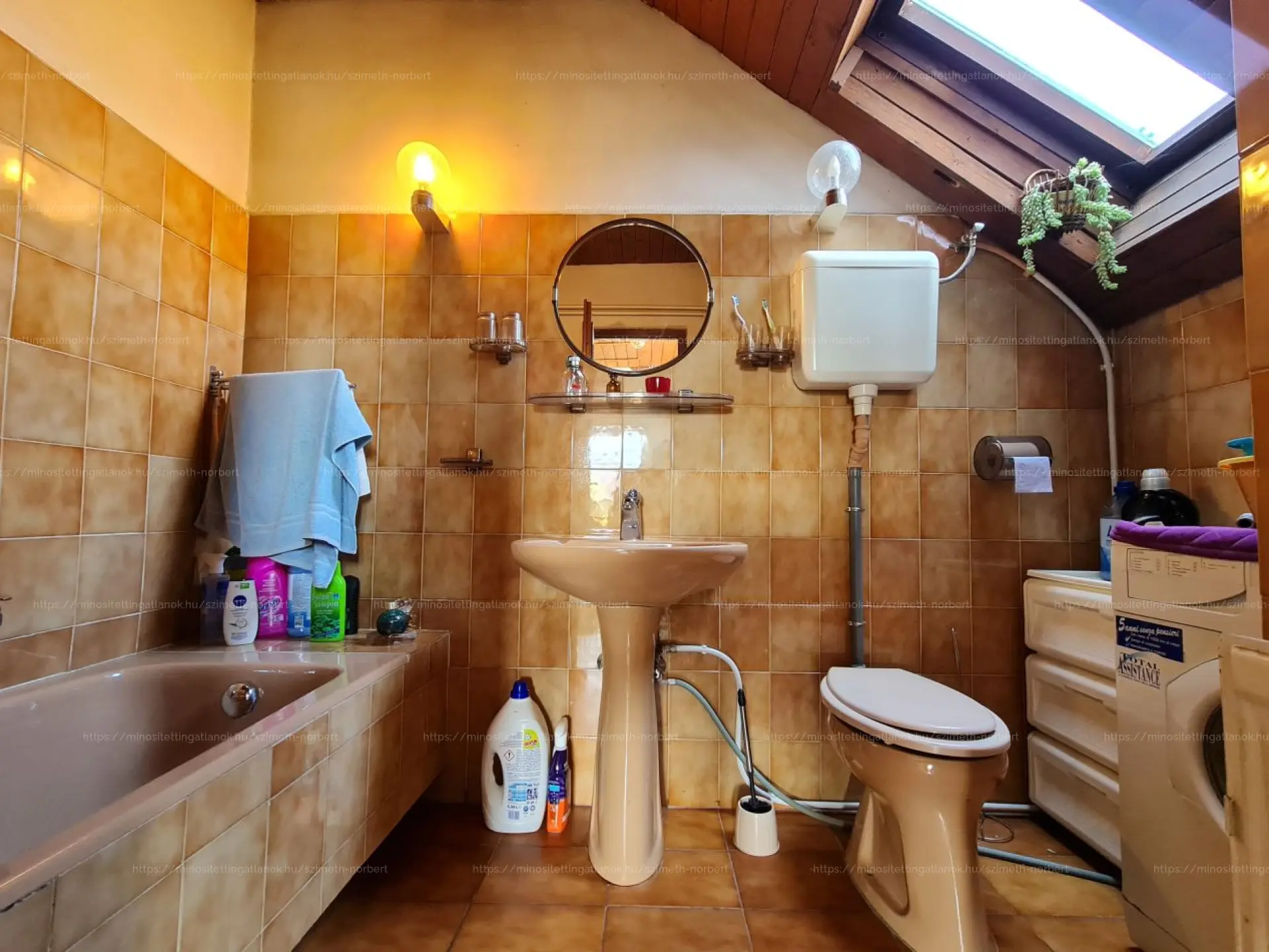 A 556 m²-es, összközműves telek igazi oázis a természet szerelmeseinek: ásott kút biztosítja a kert varázsát, és a két erkélyről megcsodálhatók az évszakok festői váltakozásai. A ház 1954-ben épült masszív betonalapokra, majd 1987-ben tetőtér-beépítéses bővítésen esett át.