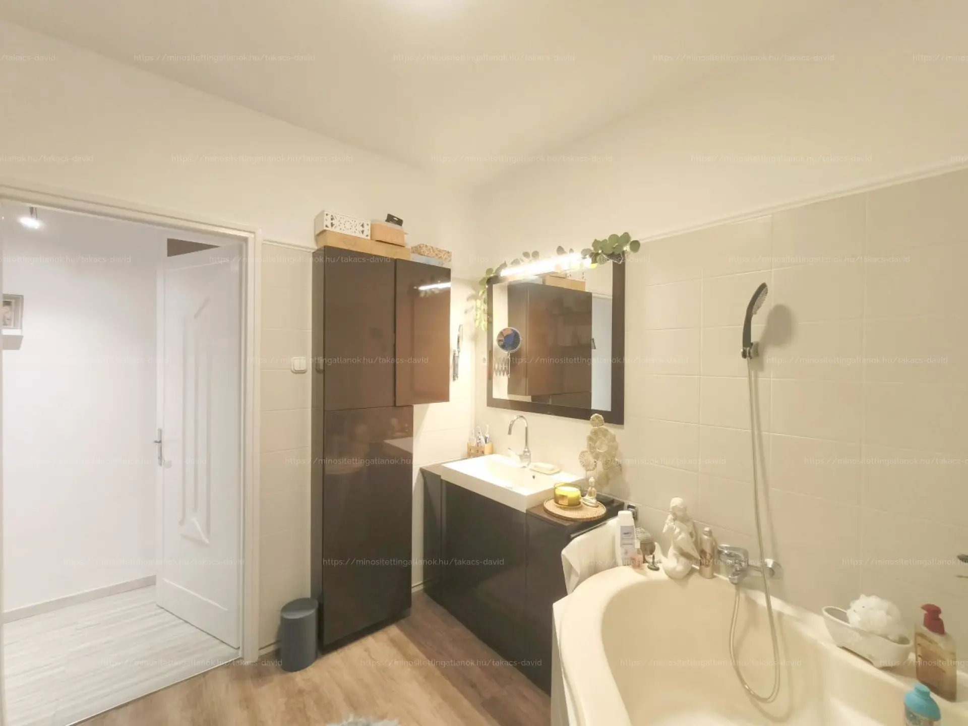 Emellett egy tágas előtér, hosszú folyosó, kádas fürdő és nagy spejz növeli az itt élők abszolút kényelmét.