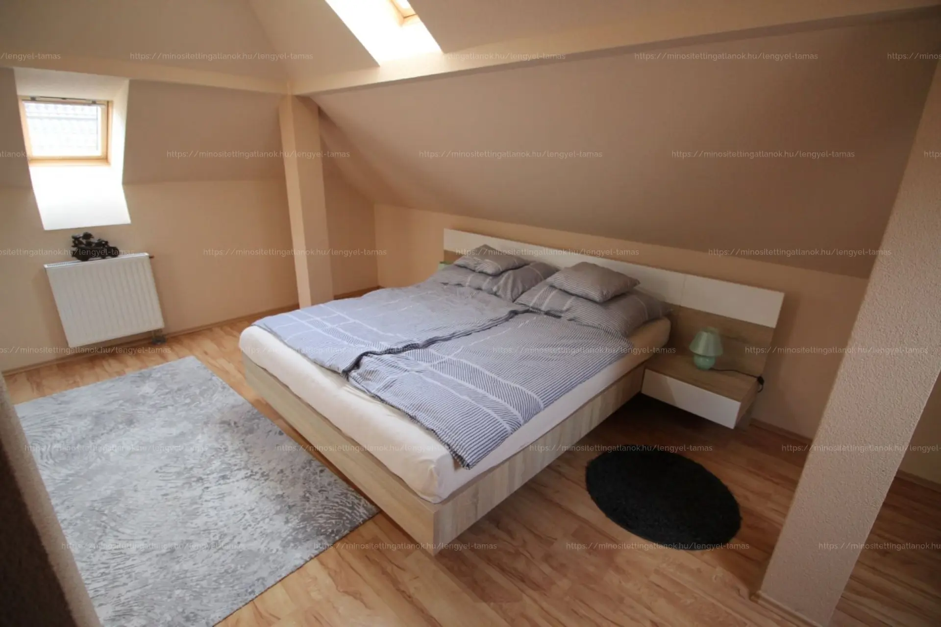 Az emeleti szintet pár évvel ezelőtt építették be és itt egy kivételes nagyságű hálószoba és egy nappali található ami alkalmas további szoba kialakítására is.