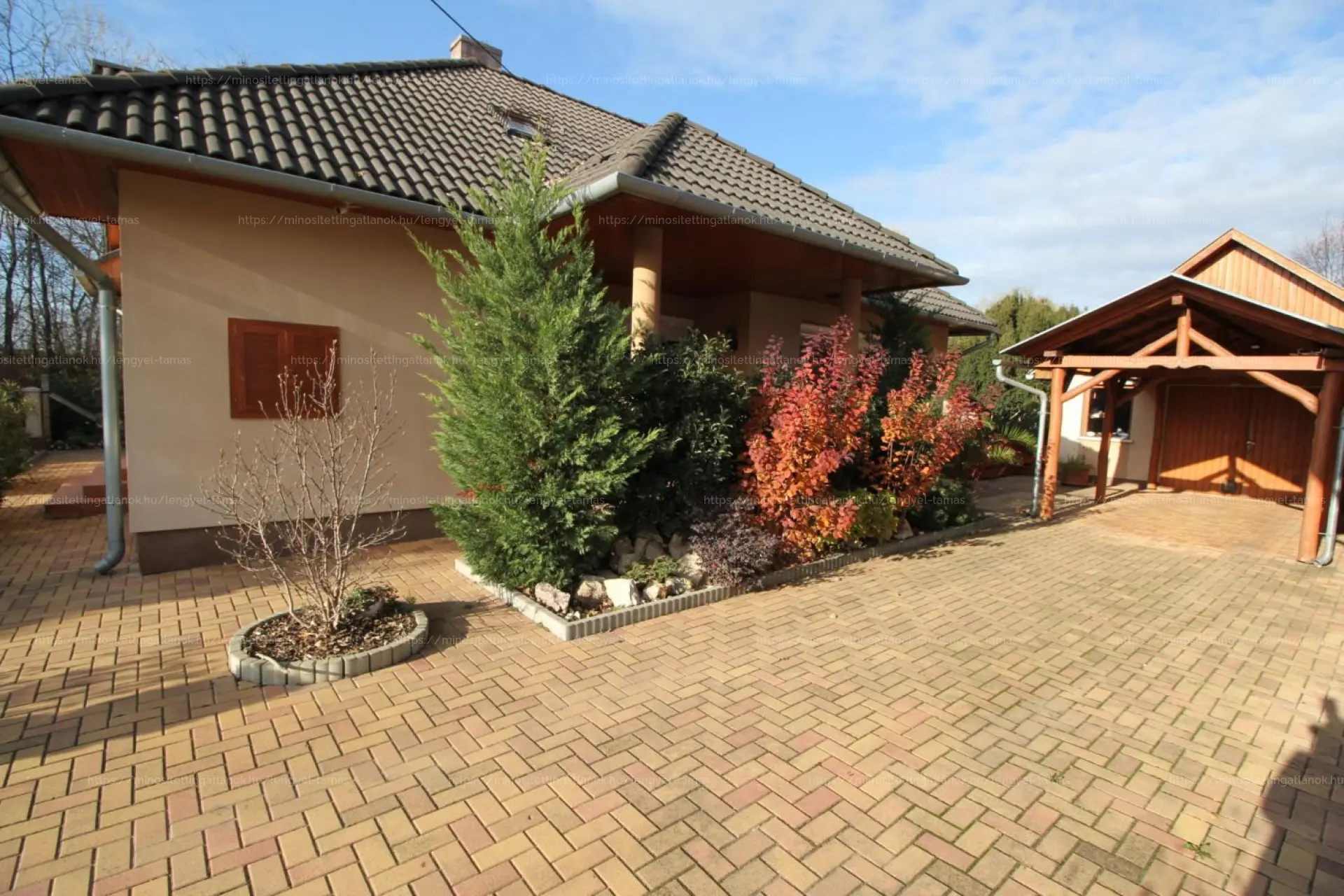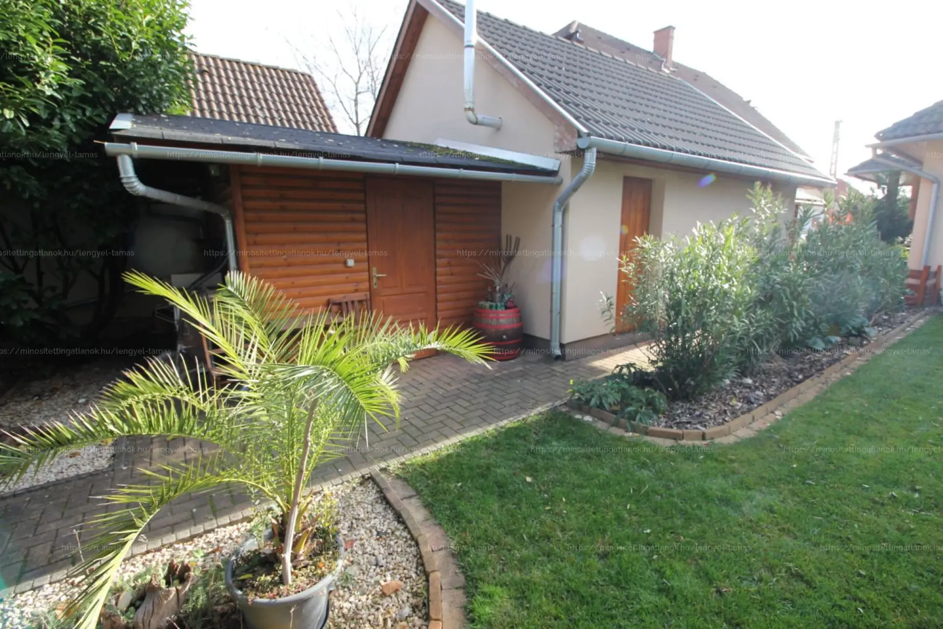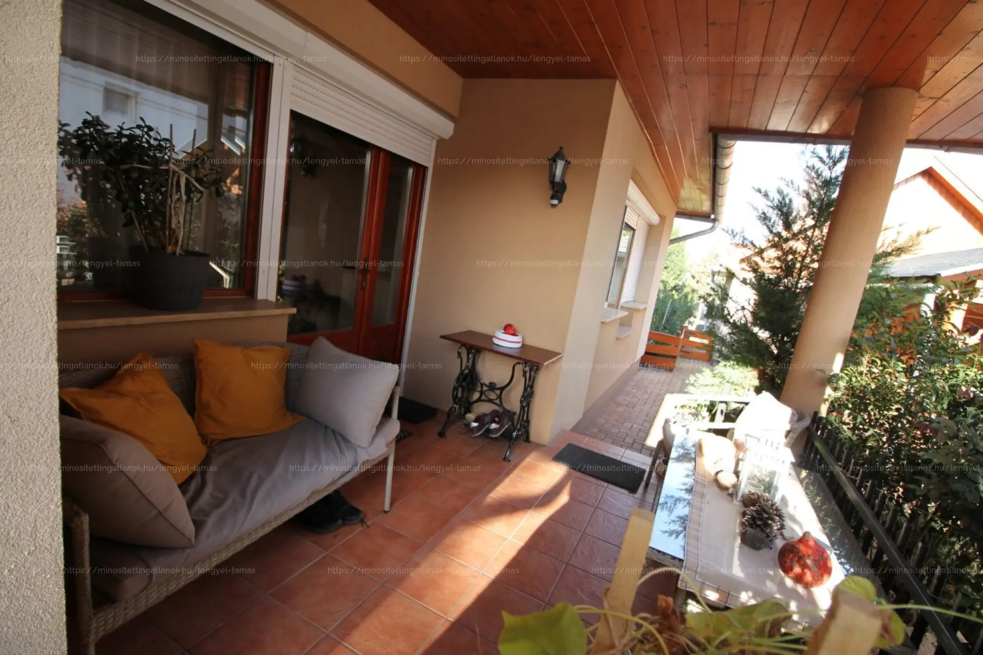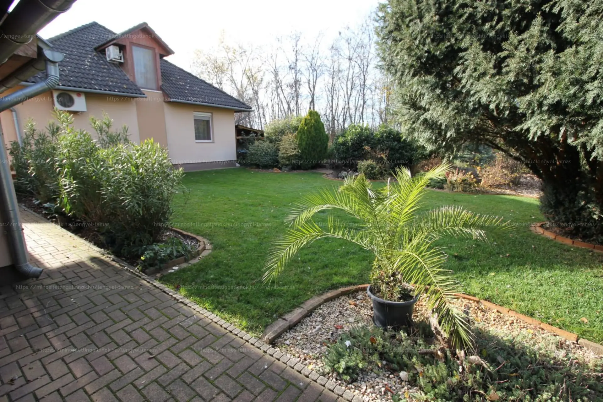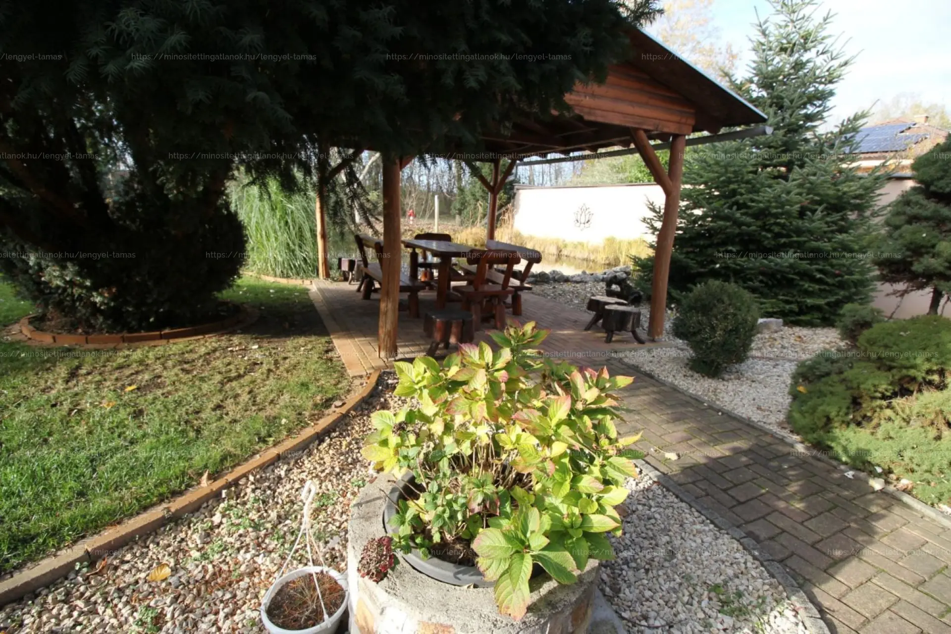 Varázslatos hangulatú udvart teljesen parkosították, automatizált öntözőrendszert telepítettek és baráti összejövetelekre fedett kiülővel és kis halas tóval álmodták meg amit teljesen árnyékolt több 10 éves növényzettel határolt. Az udvarban minden tárolási lehetőség adott így kivételesen rendezett érzettel rendelkezik.