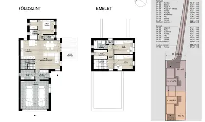Saját telekrész első lakásnál 683 m2, hátsó lakásnál 390 m2. a lakások árát a telek nem különbözteti meg.