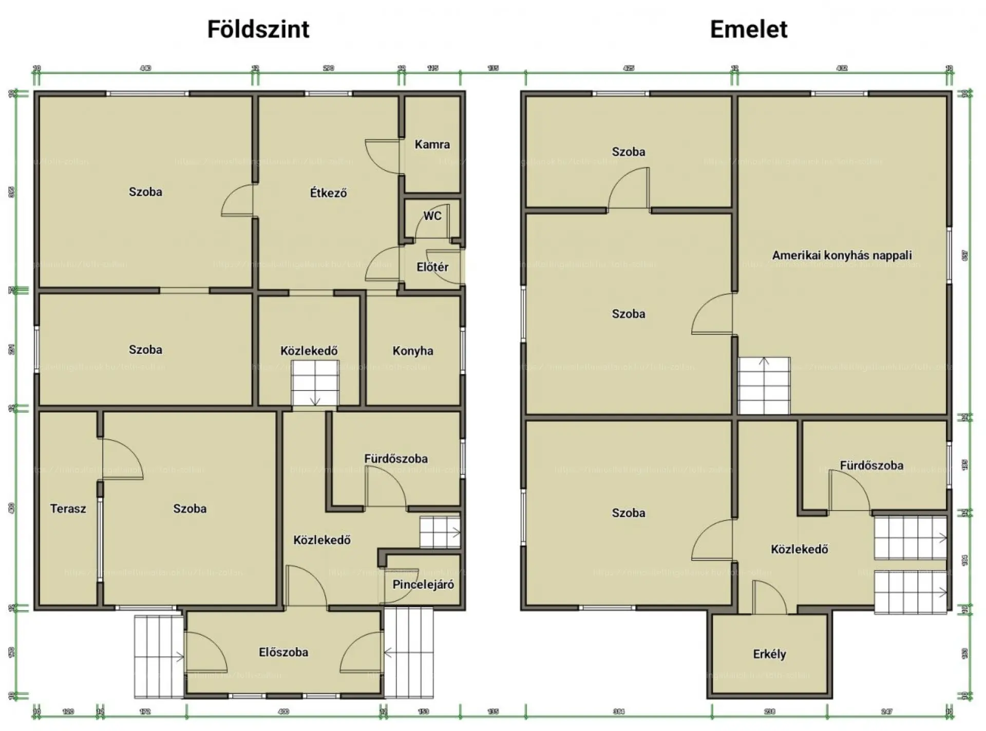 Az emeletet 1989-ben építették az alsó szinthez, ahol amerikai konyhás nappali, 2 egész és egy fél szoba, fürdőszoba és közlekedő van, valamint 4 nm-es erkély kapcsolódik hozzá. Igény szerint még a tetőtér is beépíthető, jelenleg padlástér funkcióját látja el, a közművek kiállásai nélkül.
