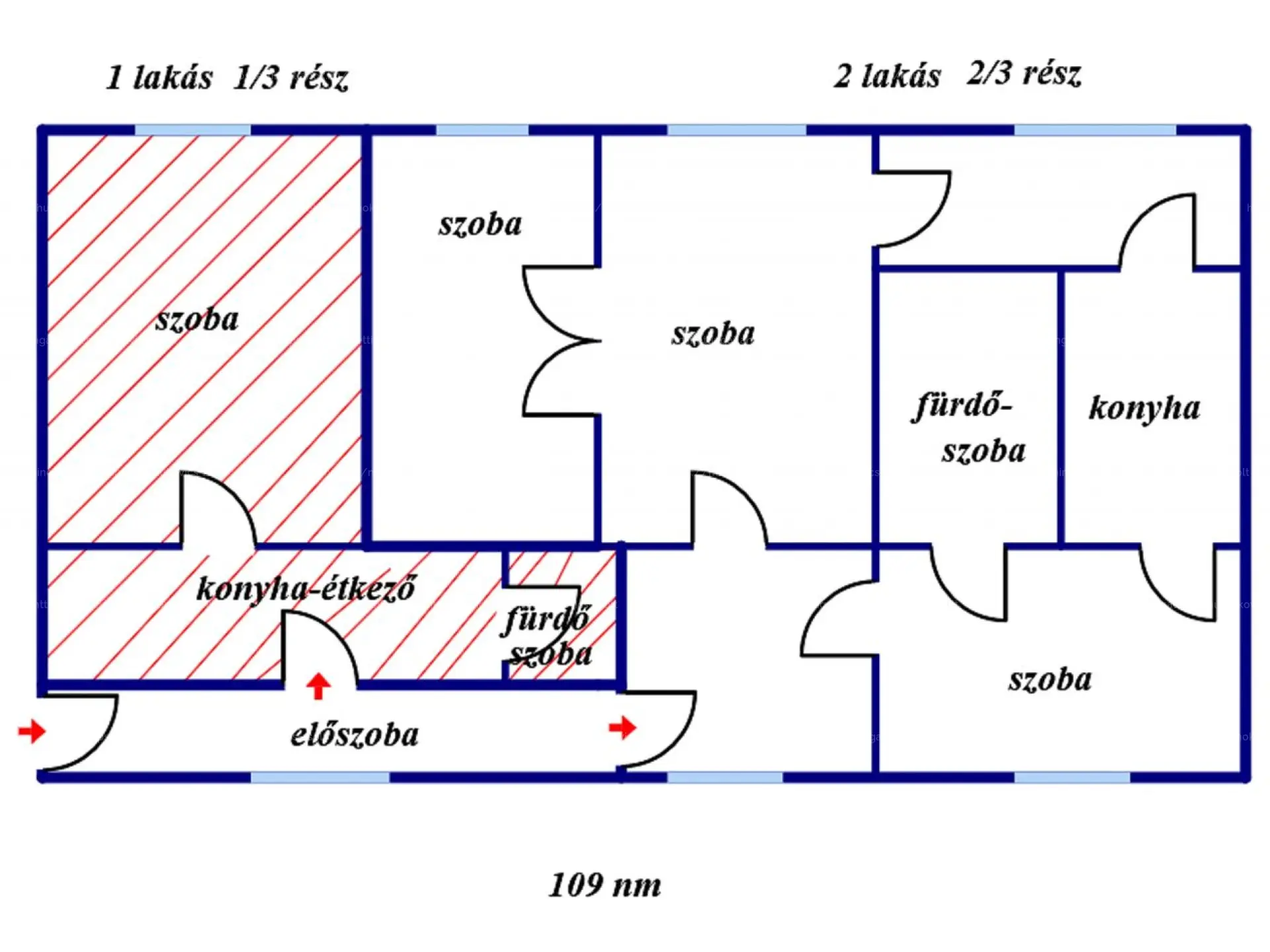 Debrecen Belváros közelében a Wesselényi utcán eladó egy 109 nm alapterületű földszinten található tégla építésű, felújítandó lakás. Az ingatlan kettő lakássá van osztva külön gázórával és villany órával rendelkezik.