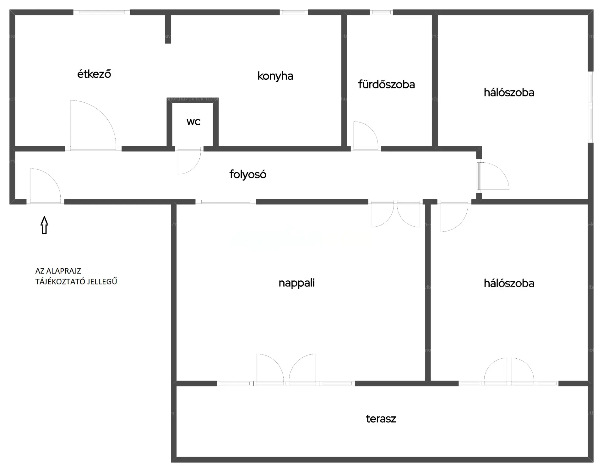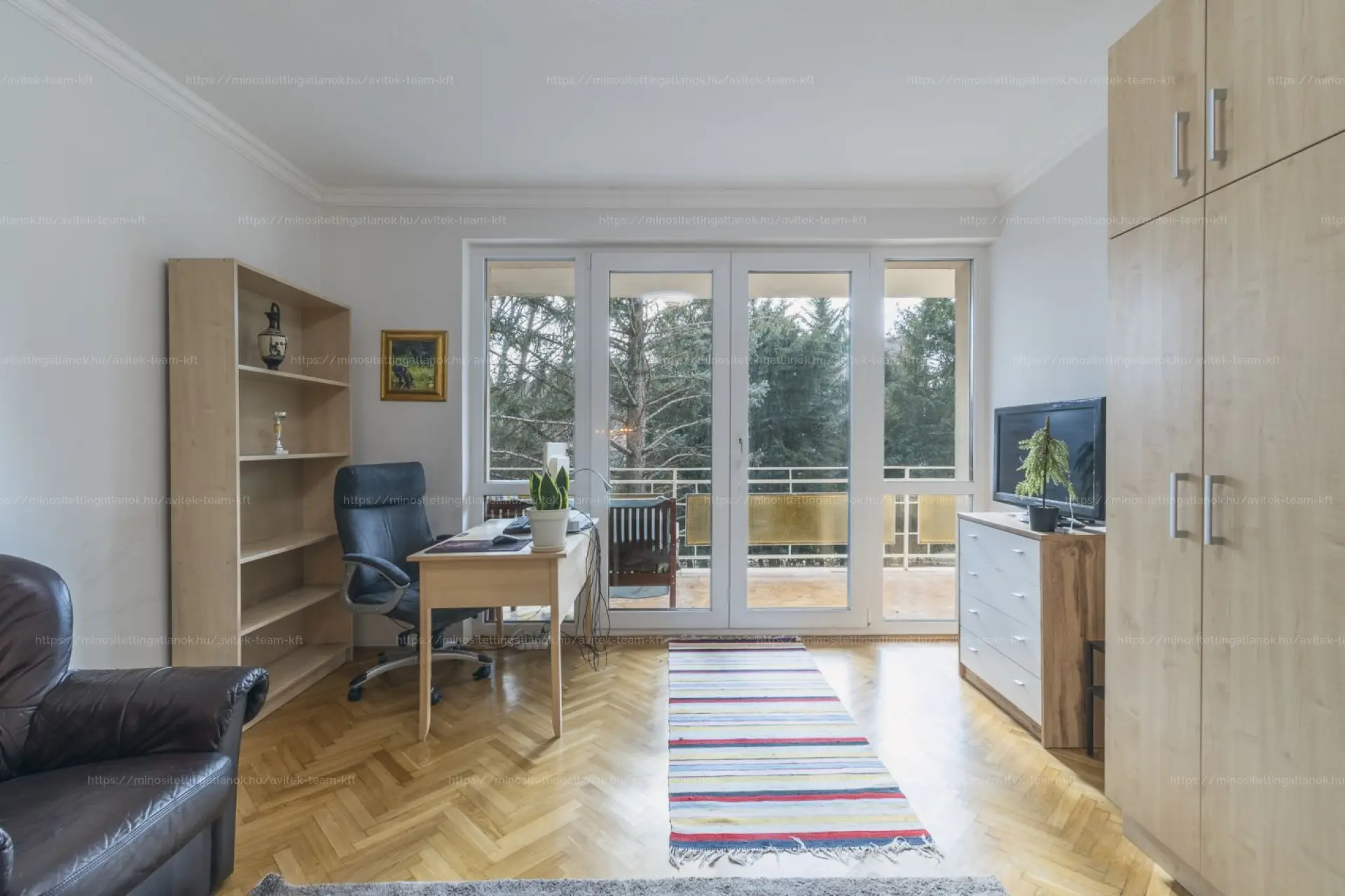 A lakás délnyugati fekvésű, 23 nm-es napfényes teraszáról gyönyörű kilátás nyílik a zöld környezetre. Mindhárom szoba kertre néző, külön bejáratú, a nappali és az egyik hálószoba is a teraszra nyílik.