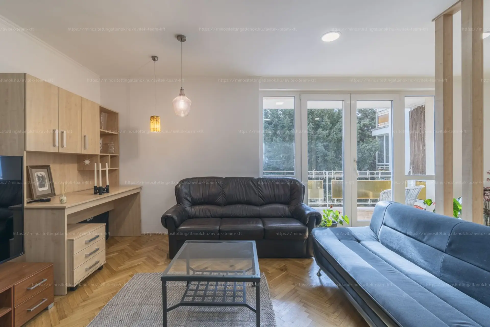 The 6-apartment condominium built in the 1970s is insulated and maintained, and a common garden can be used. Common cost: 50,000 HUF/month with renovation fund. The apartment comes with 2 storage rooms (total 21 sqm)