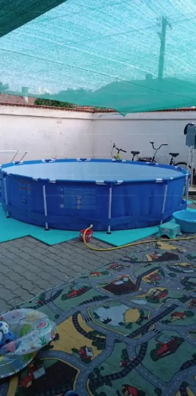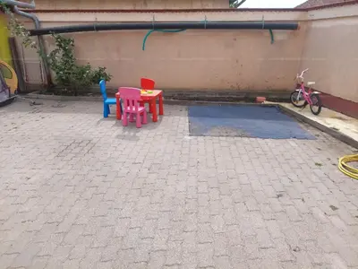 A hangulatos hangulatot belső fa gerendák garantálják, a szobák szőnyeggel borított padlóval, a többi helyiség hideg padlóburkolattal ellátott. A melléképületben praktikus tárolók és garázs kapott helyet, a térkövezett udvaron pedig játszósarok, nyári úszómedence, napellenzővel is helyet kapott, így a gyerekbarát otthon családi kikapcsolódásra is megfelelő.