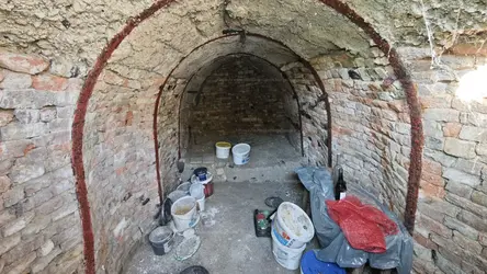 Szuterén szint: Előszoba (vizesblokk funkcióval) és két külön szoba, melyeket egy közös cserépkályha fűt be.