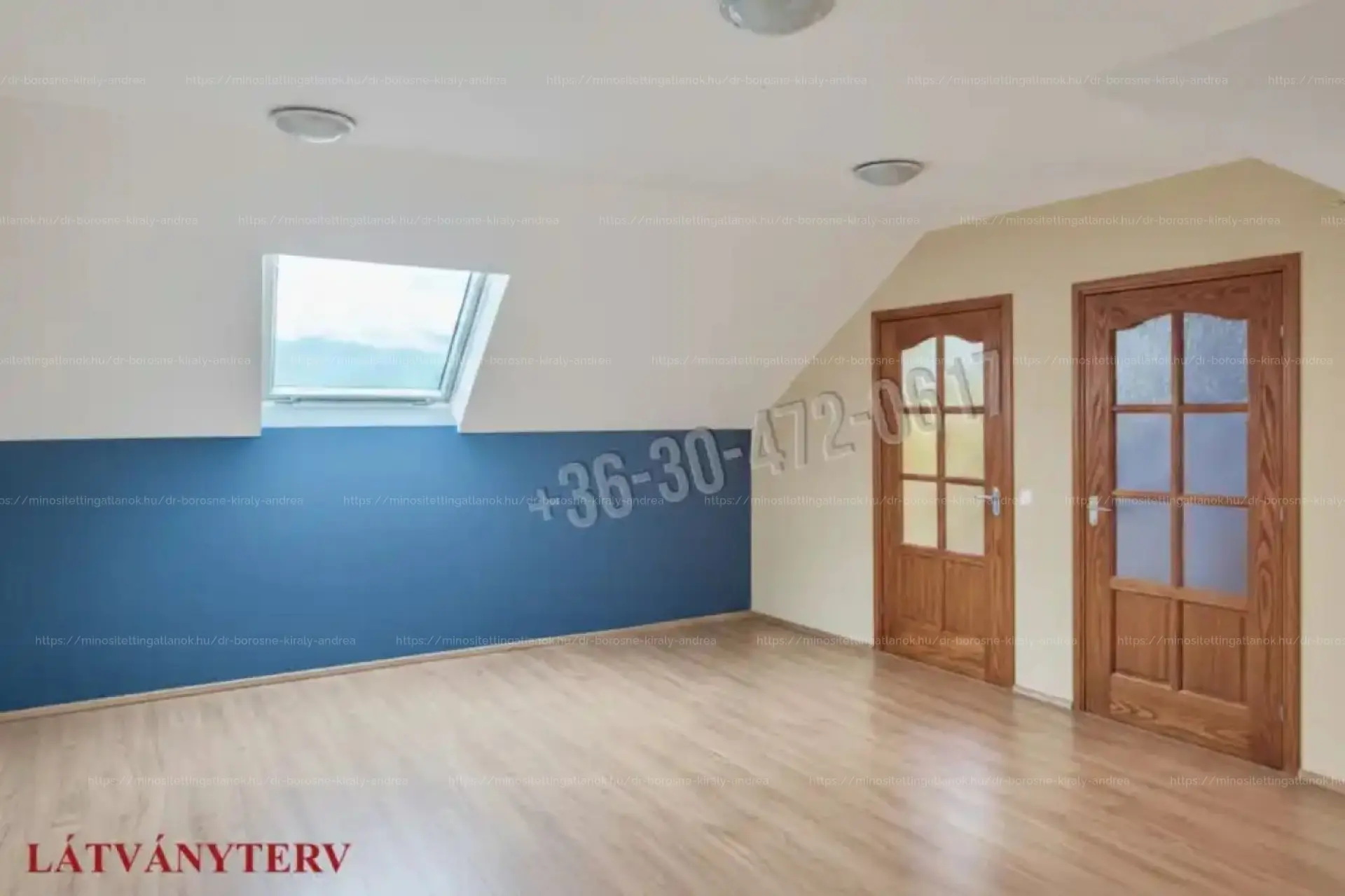 TETŐTÉR: tágas előtér/nappali, 3 hálószoba, fürdőszoba.
