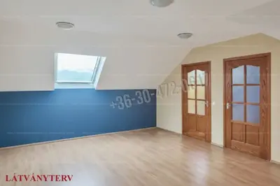 TETŐTÉR: tágas előtér/nappali, 3 hálószoba, fürdőszoba.