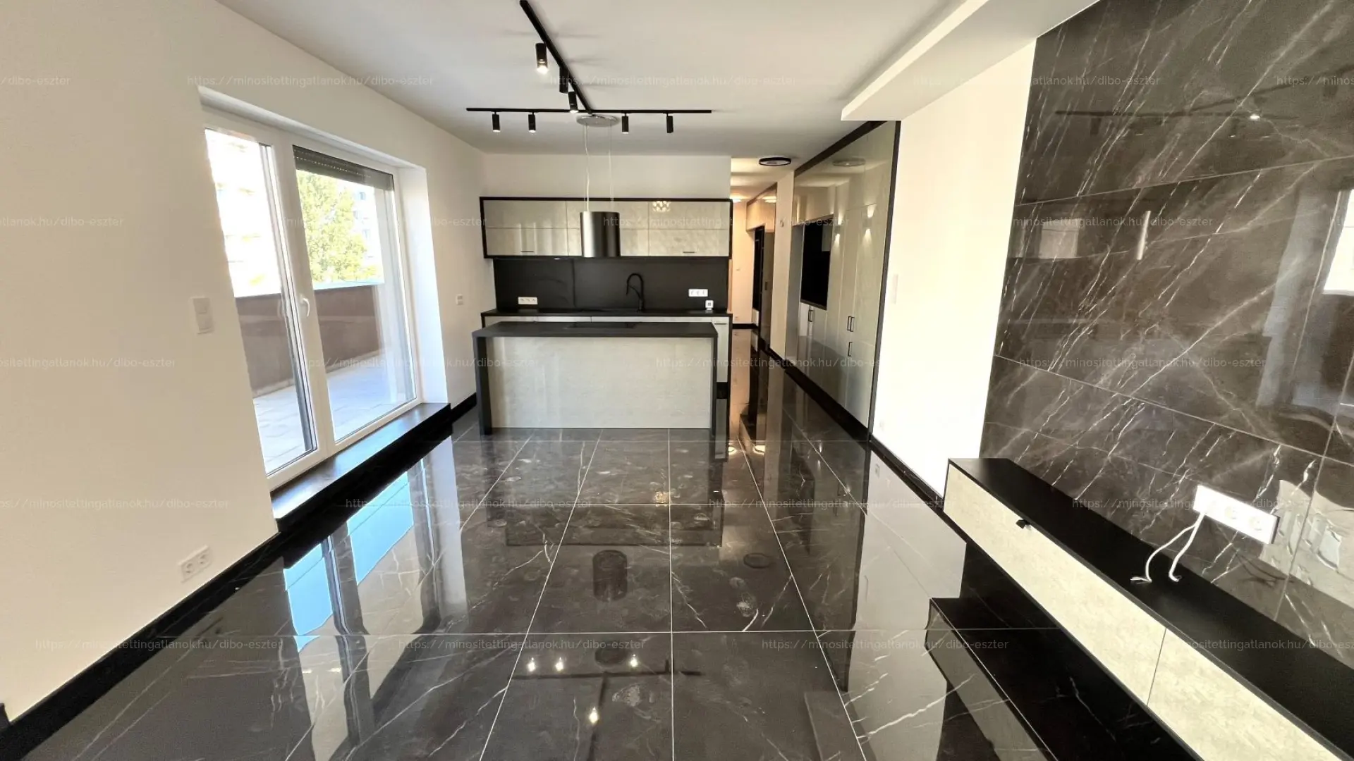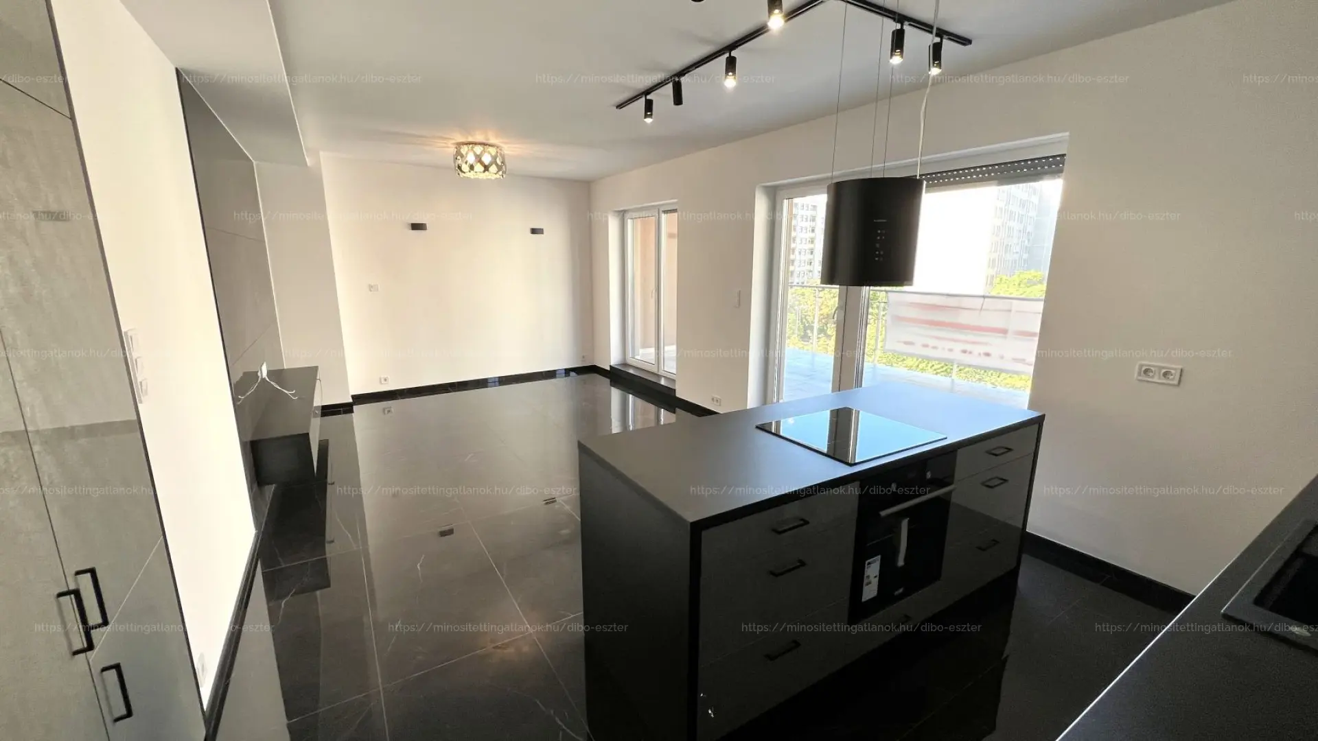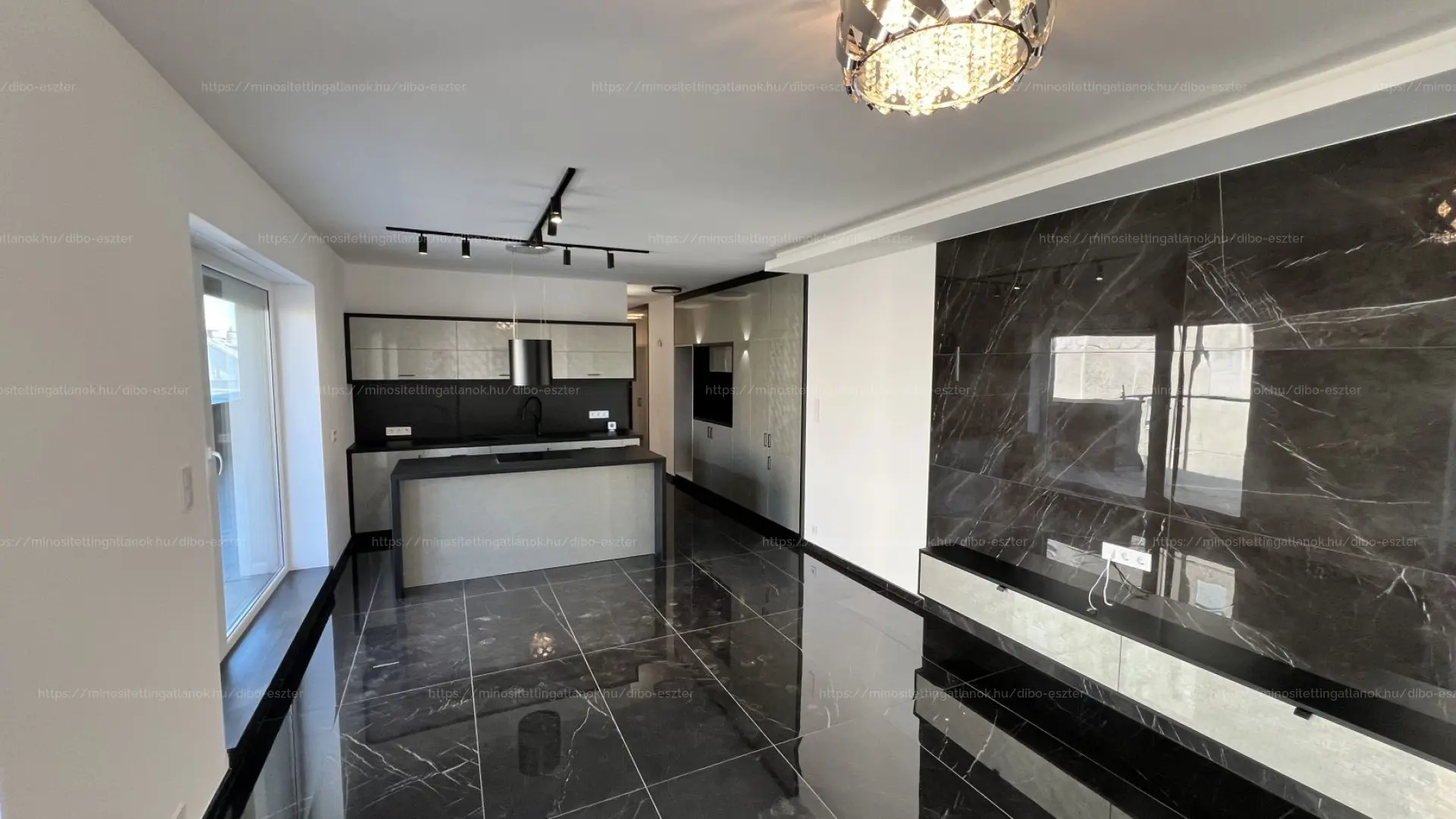 Teljesen gépesített amerikai konyha, korszerű hőszivattyús mennyezeti hűtés-fűtés + padlófűtéssel, elektromos redőnyök!